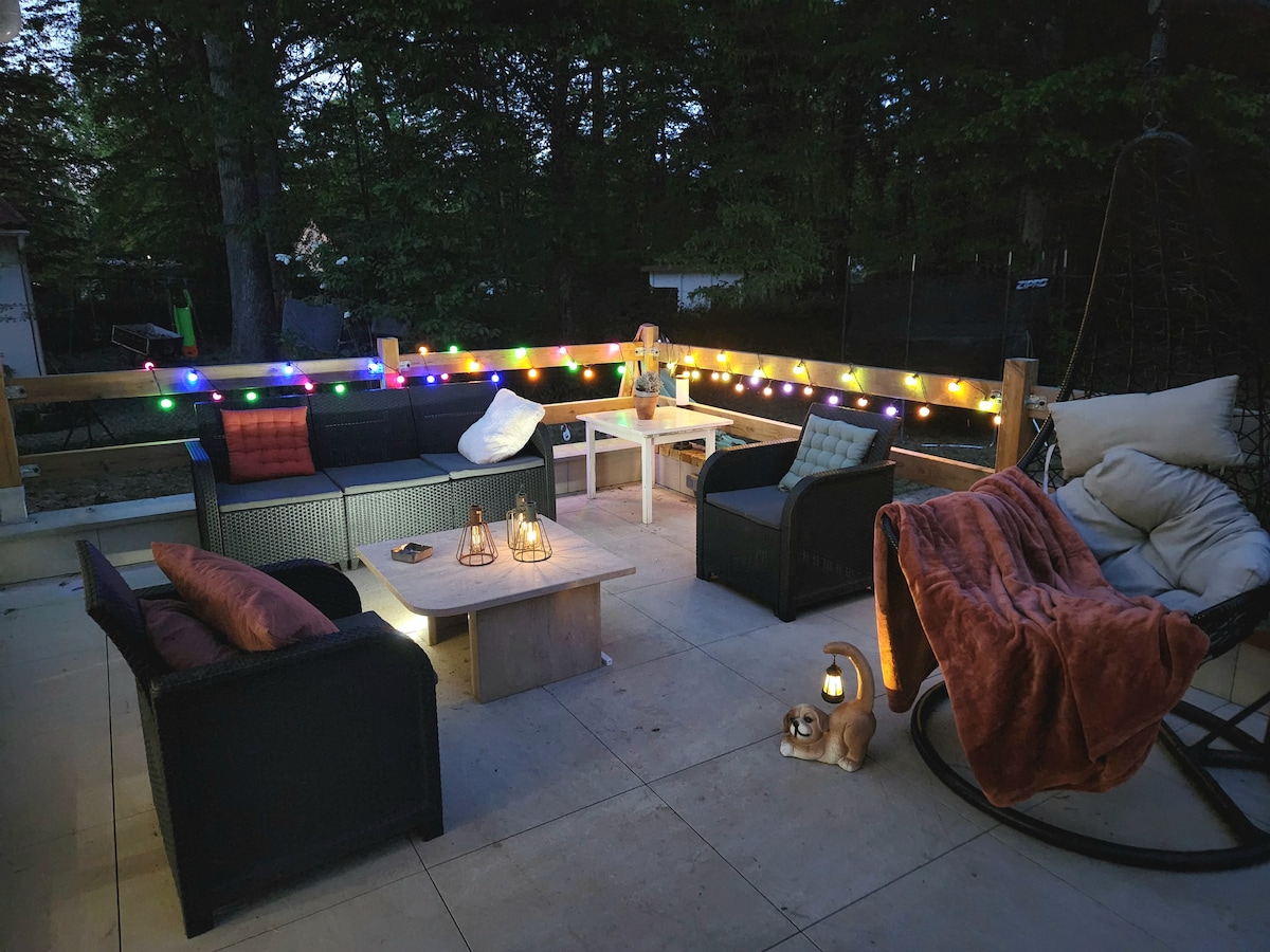A 1h30 de Paris, maison de charme dans un village typique et jardin entièrement privatif avec jacuzzi, ping-pong, trampoline et piscine. Maison douillette car bien isolée et bien chauffée avec une grande pièce à vivre très conviviale. Belle terrasse exposée plein sud avec espace repas et bains de soleil. Immense jardin autour de la maison Wifi haut débit et charge pour voiture électrique sur demande. Piscine ouverte du 30/04 au 30/09. Animaux bienvenus mais déconseillé pour les animaux fugueurs