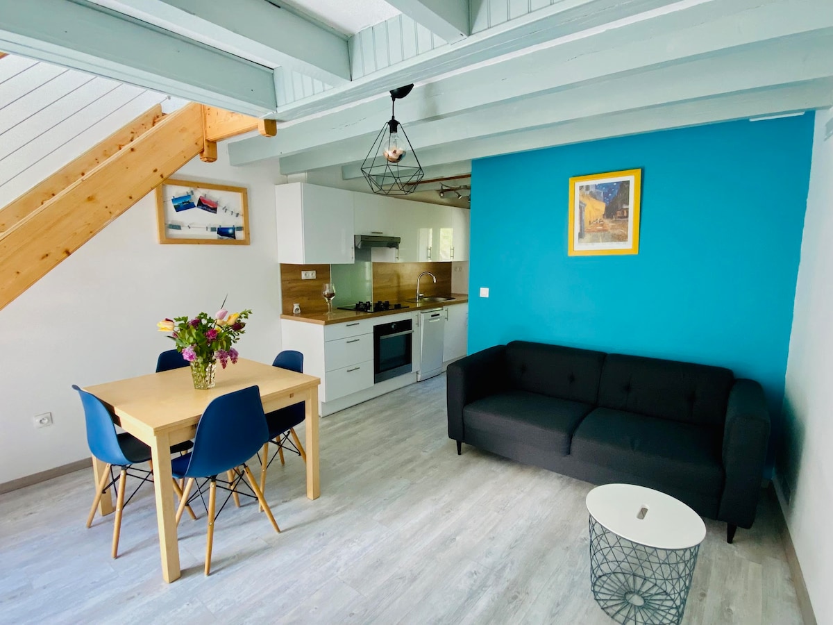 À Luz Saint-Sauveur. Situé dans le quartier thermal, à 300m des thermes (Luzea), à 900m du centre ville, camp de base pour le ski, la pratique du vélo et se mesurer aux ascensions mythiques et cols rendus célèbres par le passage du Tour de France: Col du Tourmalet, Luz Ardiden, Aubisque, Hautacam... Appartement dans un immeuble historique entièrement rénové en 2019. Appartement vraiment confortable pour deux personnes, bien qu'il y ait la possibilité de trois en utilisant le canapé-lit.