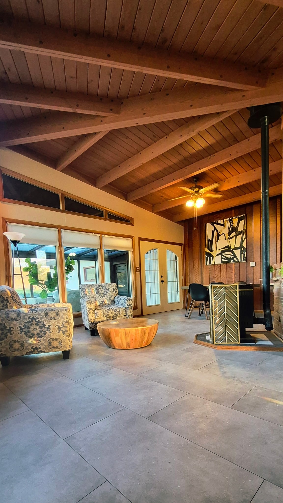 Modern 2BR/2BA retreat with in-ground pool w/diving board, hot tub, fire pit, and plenty of outdoor entertaining space. Features two living areas both with smart TV's, an updated fully stocked kitchen, and stylish décor throughout. Perfect for families, couples, or small groups seeking relaxation and fun!