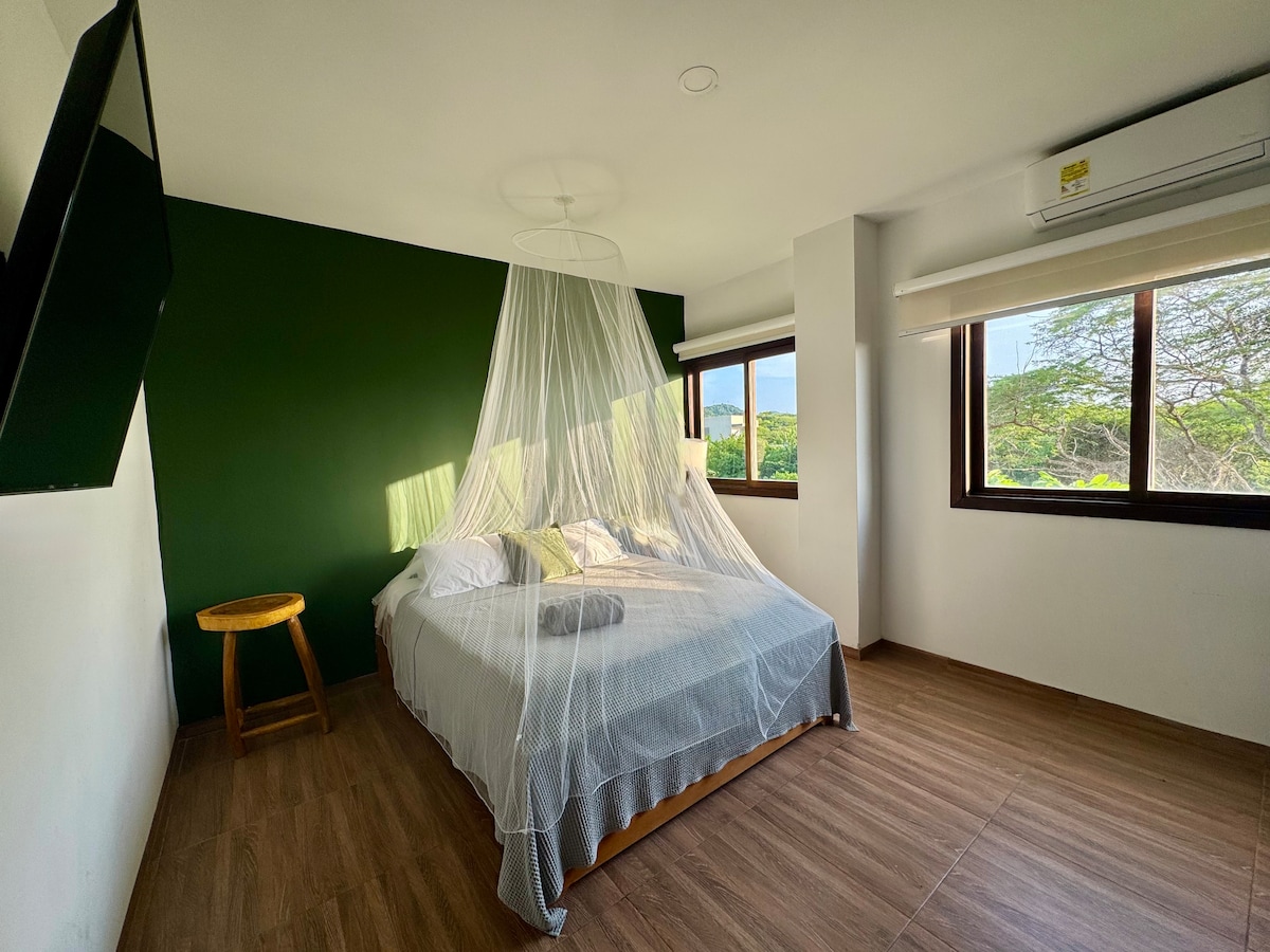 Espectacular Loft dúplex con increíble vista al atardecer sobre el mar y al faro, gran aire acondicionado central, internet de alta velocidad, ingreso automatizado, terraza privada con césped, hamaca, gran escritorio con silla ergonómica, cocina integral amplia y dotada, Tv smart 65" frente al sofa, Tv smart 55" frente a la cama, ventiladores de techo, habitaciones con baño privado, a unos minutos caminando esta la playa, calle tranquila y segura de bajo trafico vehicular, lavadora-secadora.