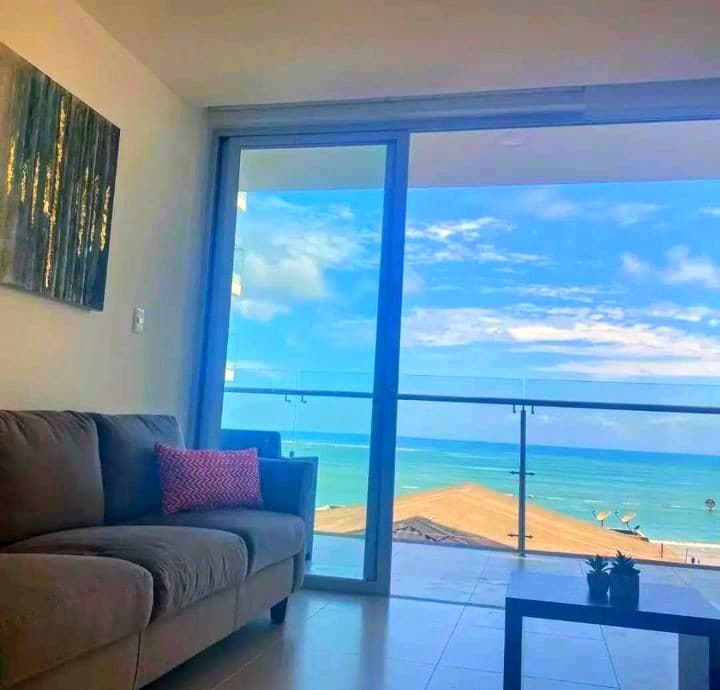 ✨ Wake up to the sound of the sea! 🌊 Modern beachfront apartment, fully furnished and decorated in a coastal style 🏖️. Enjoy a spectacular view from the spacious balcony with hammocks 🪢, connected to the living room and master bedroom. Relax with your family in a safe environment 🛡️, with 24/7 security and covered parking 🚗. Experience the vibrant energy of the boardwalk: walking, cycling, and seaside dining. You’ll love it! 🌅
