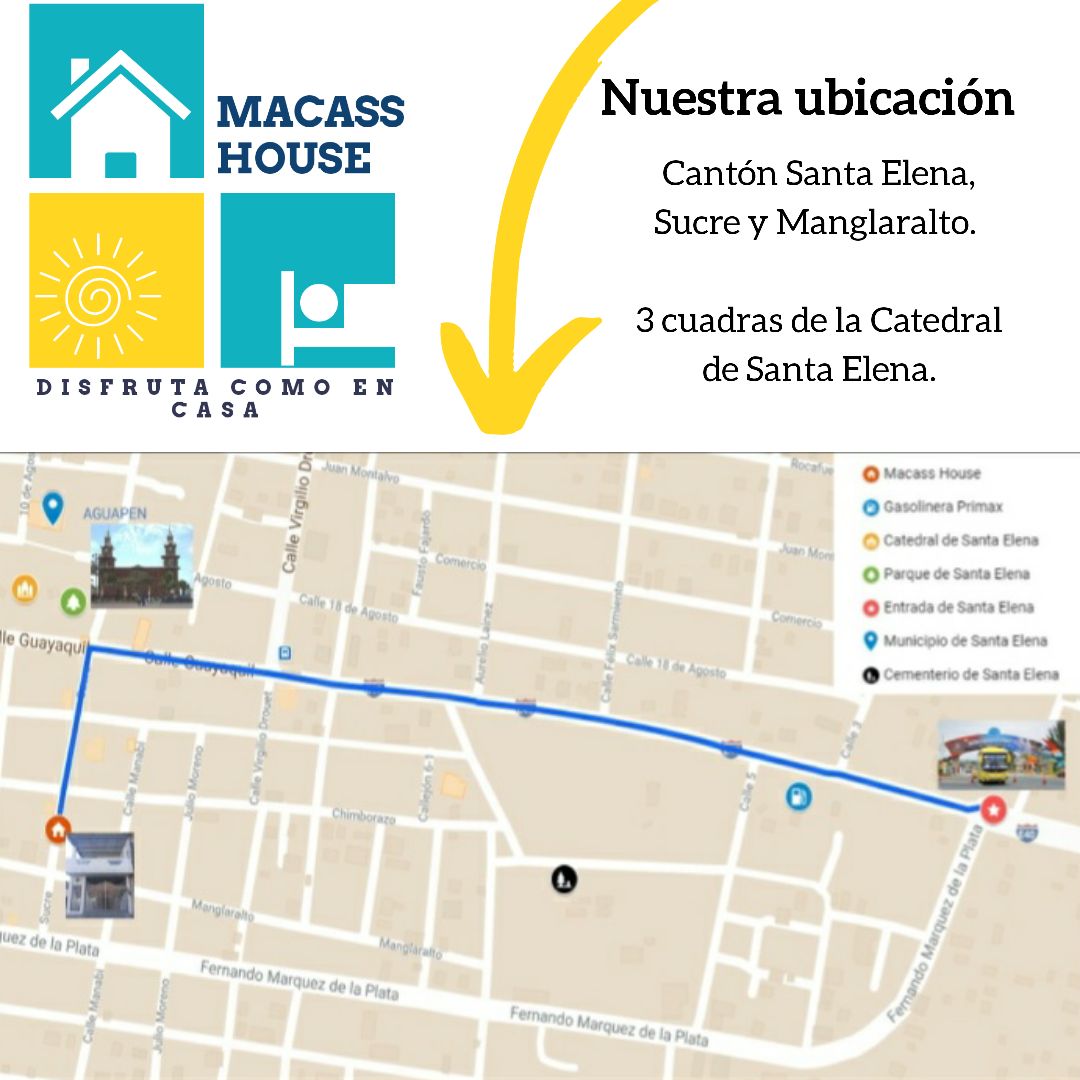 Acabados modernos. Situado en una avenida divida principal, (en dirección del Banco Pichincha y Muelle) cerca del mar( 4 cuadras), cerca del mercado (2 cuadras). -Amoblado - Acondicionador de aire en cada habitación , -Zona wifi (3 redes para mejor conectividad) -Patio amplio con piscina privada e hidromasaje con luces Led de colores y amenizar pequeñas reuniones sociales - 3 hamacas - Zona de asadero,(bbq) -Lavadero - Garaje para 2-3 carros - Invitado adicional cancela por separado