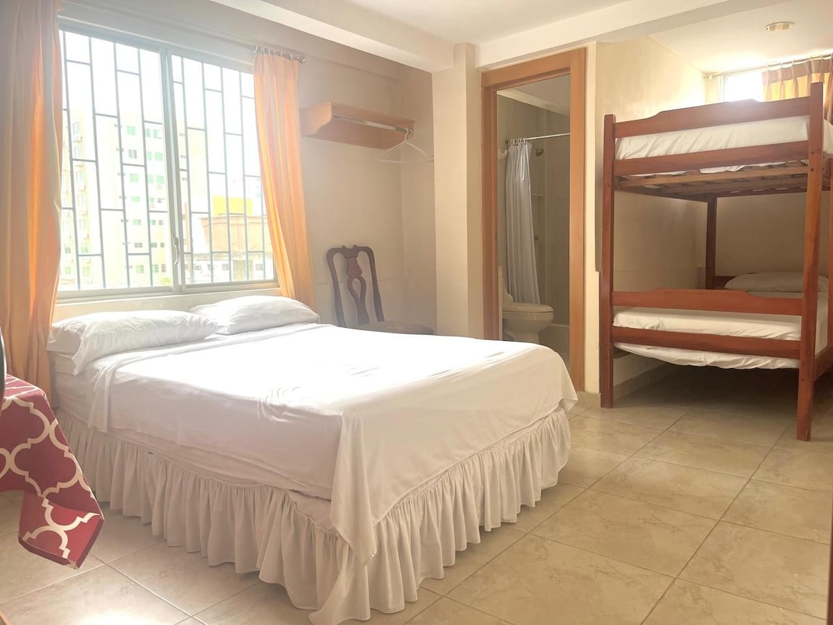 Cómoda habitación familiar en acogedor Hotel Mileto, a solo pasos del malecón de Salinas. Ideal para descansar y disfrutar en familia.