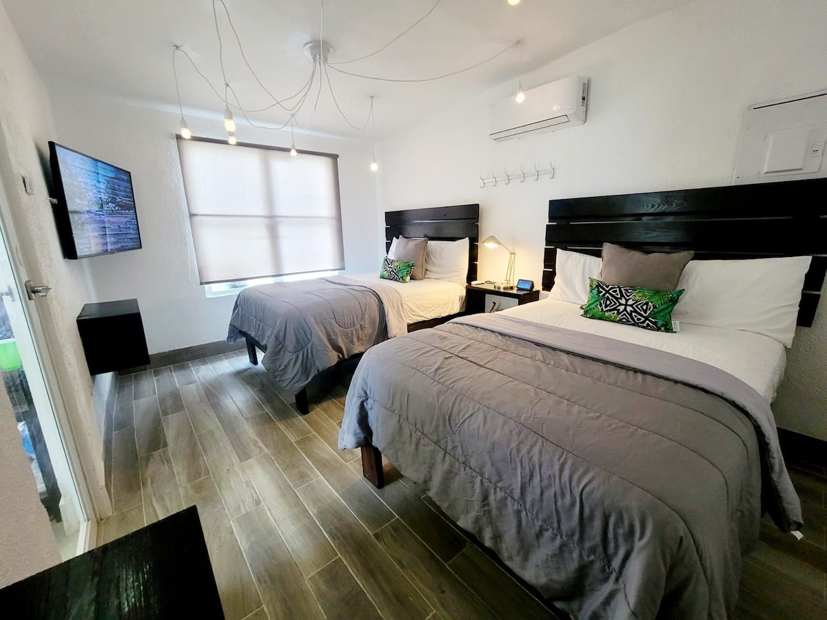 Mikaluka Beach House is a SMALL and unique hidden paradise property located in Pozuelo, Guayama Puerto Rico. You can enjoy the beautiful beach front view sunrise and sunset while you relax your stay. We are located 1.15 hr driving south from SJU Airport. The property has: • 1 bedroom with two full beds. (air conditioning) • Private pool • Beach front • Parking available • Internet • TV with Roku • Water heat • Coffee maker • BBQ area