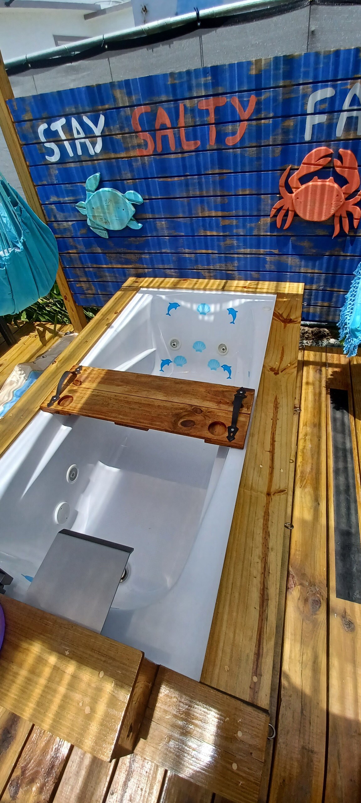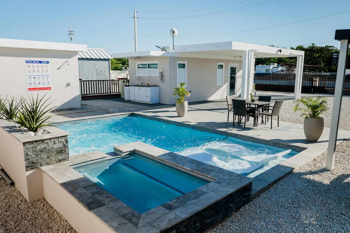 Casita Brisas del Mar – Salinas, Puerto Rico La propiedad cuenta con una piscina privada con calentador, ideal para disfrutar en cualquier momento del día, y un jacuzzi perfecto para relajarte luego de un día de playa o exploración. Su terraza amplia ofrece el escenario ideal para compartir en familia o con amigos mientras disfrutas de la brisa del mar.