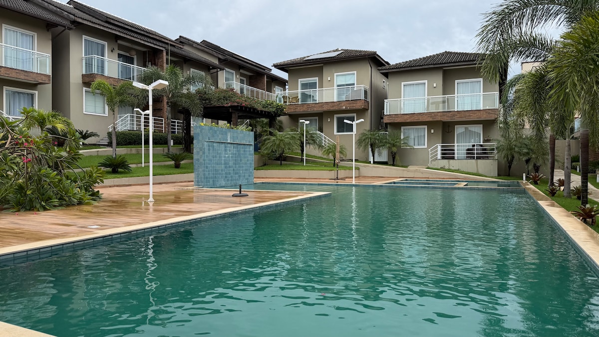 Divirta-se com toda a família neste lugar cheio de estilo e conforto. - 4 QUARTOS SENDO 3 SUÍTES - 500 Metros do maior PARQUE AQUÁTICO - 1500 Metros da praia - 200 Metros do RESORT - Wi-Fi - Churrasqueira elétrica - Piscina c Hidro-Massagem - Segurança 24 hs - Área Gourmet equipada - Cervejeira Fricon 281 CHECKIN e CHECKOUT - Não tendo reserva posterior podem sair mas tarde. Obs: COBRAMOS TAXA DE ENERGIA ELÉTRICA R$ 1,55 CADA KWH, Calção é cobrado um dia antes do check-in.