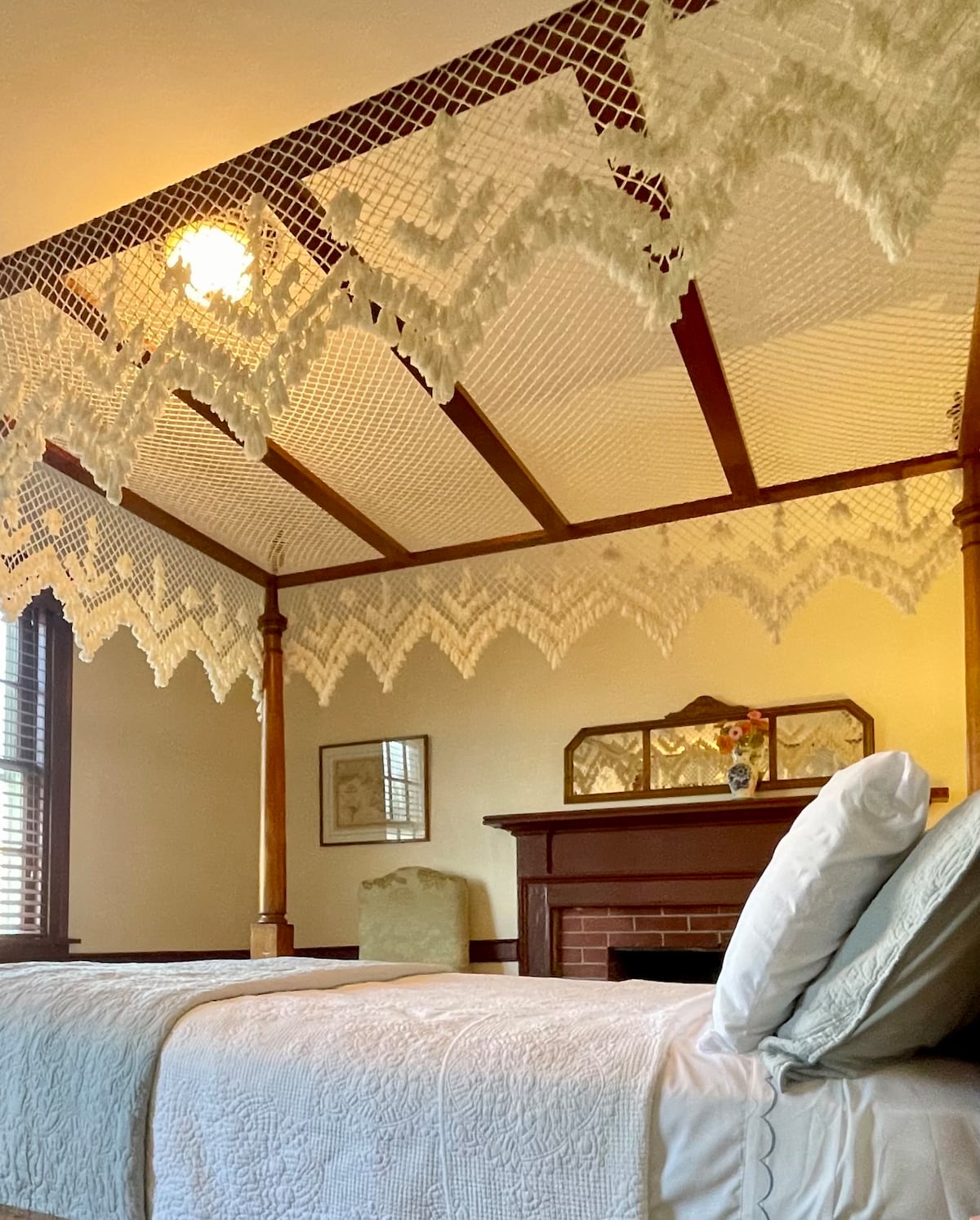 The cozy loft is located above the apiary workshop. It is a spacious, kind suite with a walk-in bath featuring a rainforest shower. Windows overlook the donkey pasture, river, farm, and gardens. Designed for a true retreat, there is no WiFi, TV, or smoking. For breakfast, travel on over to Sugar Water Restaurant to have a free breakfast with coffee, tea, juice, and more. The Loft includes a small refrigerator plus coffee and tea essentials. Please note: children are not permitted.