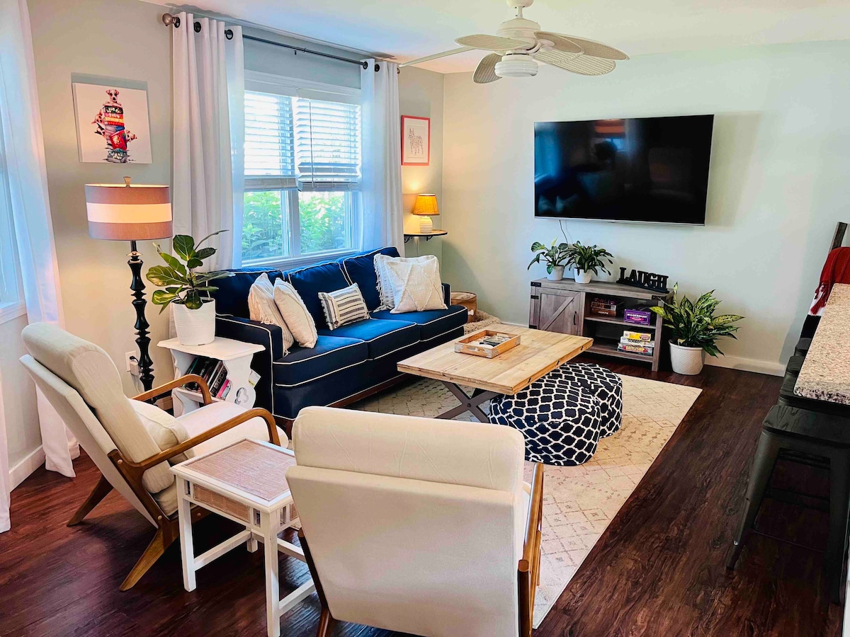 Indulge in a delightful and dog-friendly getaway. Conveniently located near amenities such as outlets and the beach, yet offering a secluded and private retreat. The property boasts a fenced-in backyard equipped with a fire pit, grill, and string lights, providing an idyllic ambiance for relaxation and entertainment.