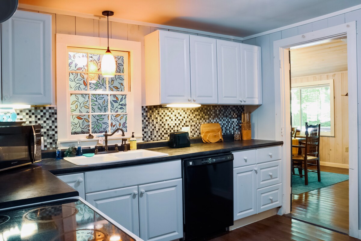 Welcome to your perfect first floor retreat. Woodland trails on the property, local hikes like BOG MT, a beautiful waterfall and so many more. Bring your kayaks and paddle Grafton Pond or Pleasant Lake and jump off the rock at Blueberry Island. Only 30 minutes from Sunapee Mountain Ski Area & 21 minutes from Ragged MT Ski Resort. Whether you're seeking the thrill of the slopes, the tranquility of nature, or a bit of both, our Airbnb is the gateway to an unforgettable New Hampshire experiences.