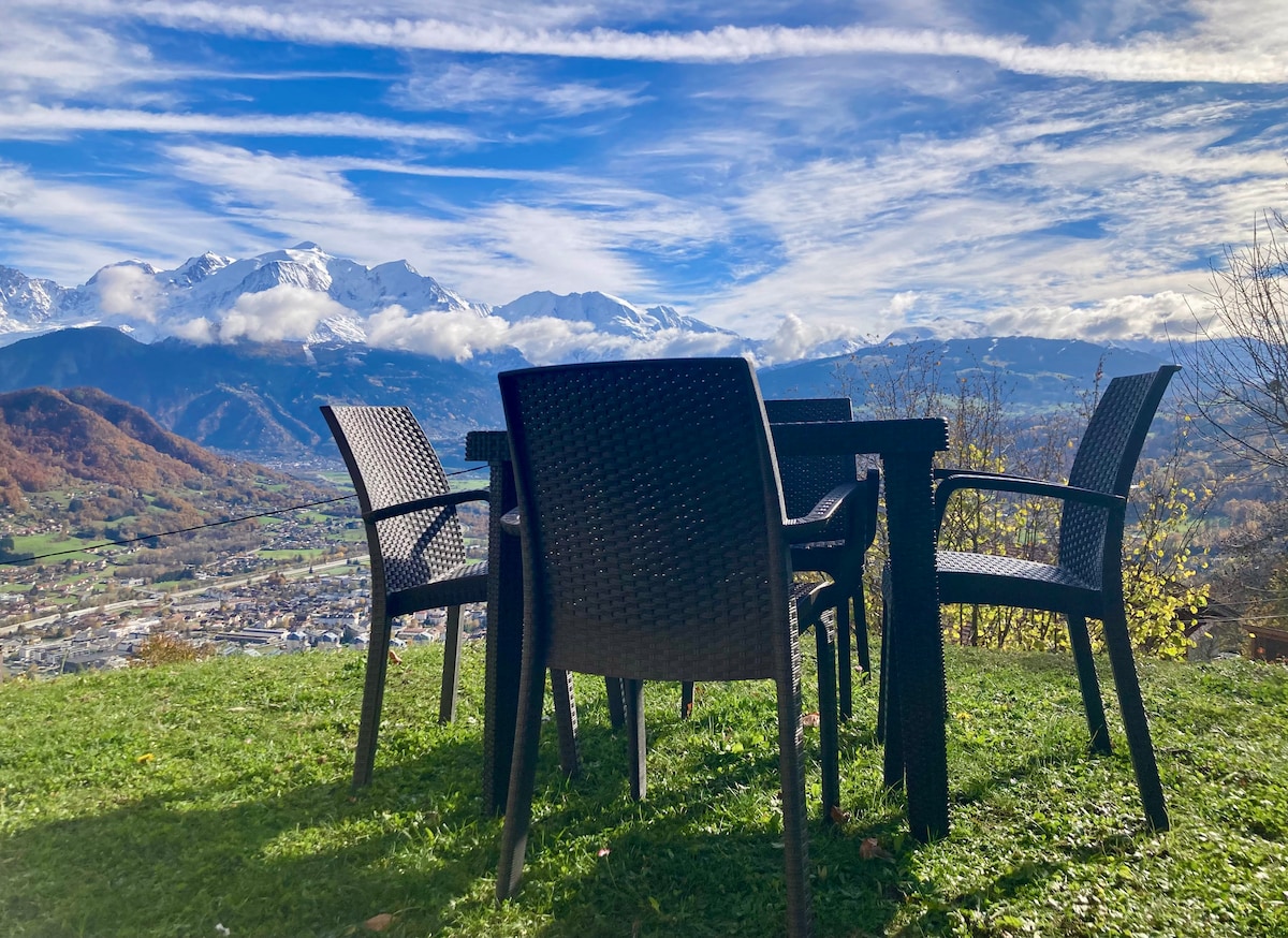 Soyez les bienvenus au pays du Mont Blanc! Nous vous accueillons sur le coteau de Sallanches, face à l’emblématique chaîne du Mont-Blanc et à la chaîne des Fiz, avec une vue à couper le souffle. Vous disposerez d'un appartement confortable, totalement indépendant, doté d'une chambre séparée. Vous bénéficierez également d'une terrasse privative. Nous aurons à coeur de vous guider dans le choix de vos activités et de tout faire pour que vous vous sentiez comme à la maison!