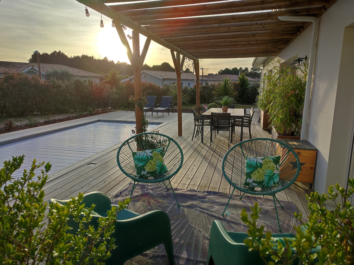 Maison de plein pied classée *** à votre entière disposition avec une cuisine équipée ouverte sur un séjour très spacieux, deux chambres pouvant accueillir 4 personnes +2 enfants avec la possibilité d’utiliser le canapé lit, un jardin arboré et une grande terrasse. Idéalement située pour visiter la région : le bassin d'Arcachon - la dune du Pilat - le Cap Ferret - Les plages océanes - Biscarosse