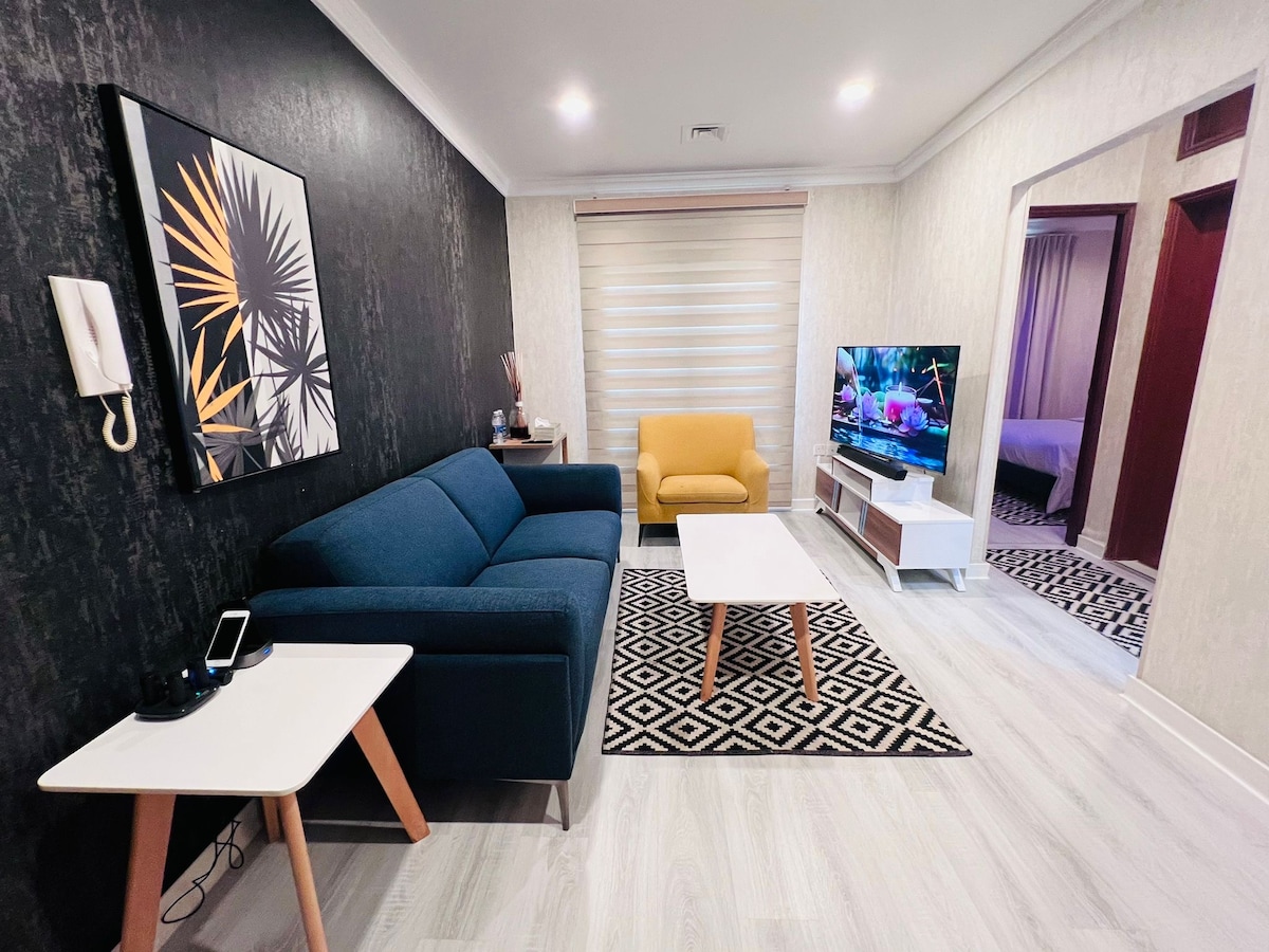 💎Self Check in fully furnished apartment in Salmiya 💎5G ultra speed WiFi 💎Philips Hue color light with mobile app 💎Self Check-In with Electronic lock 💎55’Smart TV / Bluetooth Sound bar 💎50”TV in Bedroom 💎Netflix,OSN, Prime, ZeeTV,SDisney 💎Toiletries & bath towels provided 💎Cable free mobile chargers 💎Dr. Vranjes luxury oil diffuser