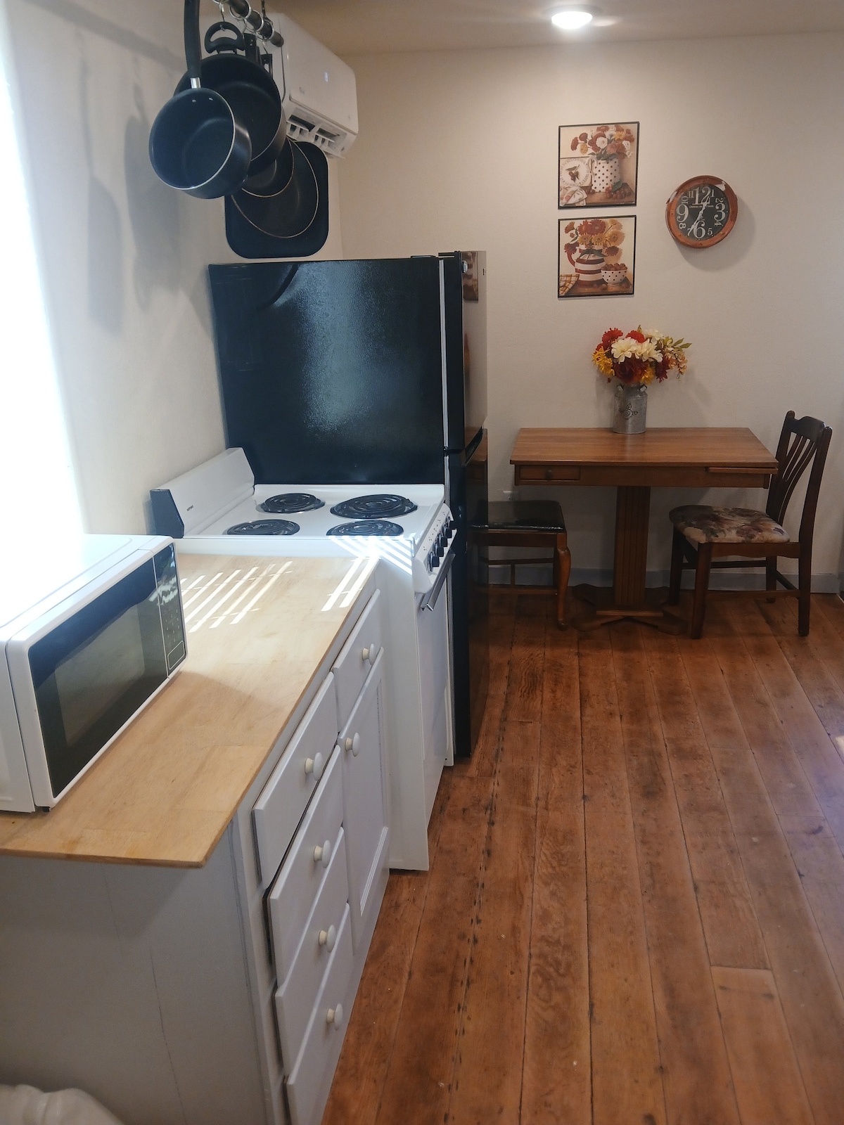Listing is newly remodeled small studio apartment, perfect for one, two if you really like each other! Studio unit is attached to garage which is 25 feet from main house. Fully equipped kitchen, 1 futon double bed. Apartment is comfortable and homey, located at the end of a quiet, secluded lane. Patio area complete with chairs, table and BBQ. Convenient parking in gravel driveway right next to entrance! Also large parking area available for trailers. This listing is new as of April 2025!