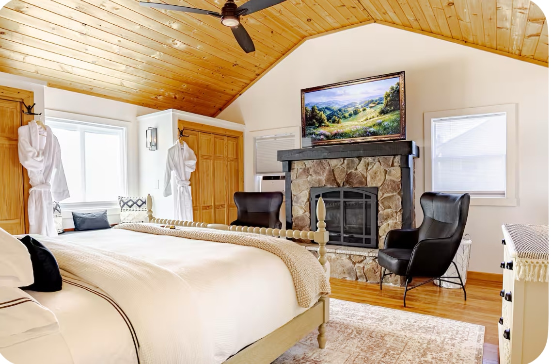 Welcome to our serene Riverview Suite, where the estuary of the Salmon River flows right past your large picture window offering uninterrupted views of nature’s artwork. A perfect place to enjoy the year round beauty and adventures of Pulaski. Anglers will find themselves in the heart of salmon and trout territory. Drive 200 yards across the Route 3 Bridge to hop on the snowmobile trails or hike Selkirk State Park, or a few miles north to find yourself golfing near Sandy Pond.