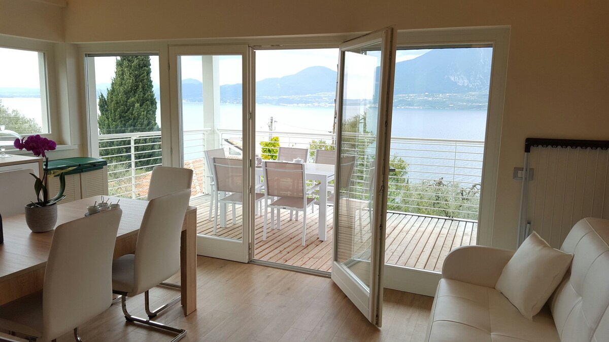 Appartamento di 54mq con accesso diretto a piscina e giardino, con vista panoramica sul Lago di Garda.Posizione superlativa e riservata. Utilizzo del giardino e della piscina, riservatezza e relax negli ampi spazi esterni. Costruzione moderna del 2015. Entrata privata e autonoma, ampio parcheggio. Pulizia rigorosa. Totale privacy. Ammessi animali di piccola taglia.