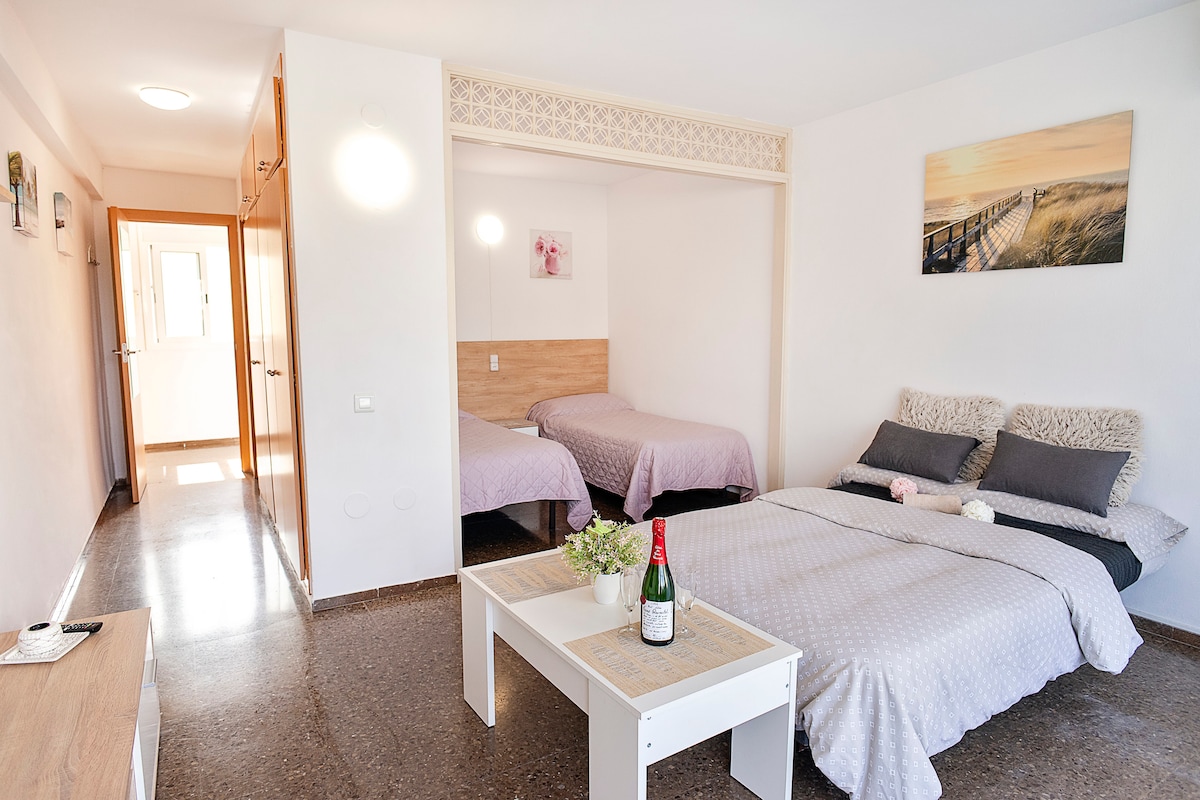 Apartamento totalmente reformado y equipado, a solo 100m del paseo Jaime I y la playa de Levant a escasos 30m de supermercados y restaurantes. Dormitorio con cama de matrimonio de 150cm, salon-comedor con sofá cama con apertura italiana de 140cm. Balcón, Wi-Fi, 2 TV smart, cocina equipada con todo lo necesario, agua potable Osmosi 5 filtros, toallas, sabanas, gel, champú. Tasa turística NO incluida (1€persona/noche), se pagara en efectivo, o en centro de resoluciones 24h antes de su llegada.