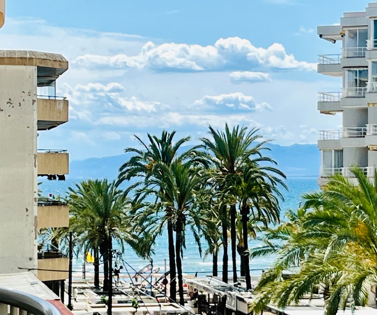 Apartamento con vistas al mar. Dos amplios dormitorios, salón, comedor, cocina equipada y baño completo. Dispone de una amplia terraza con zona chill-out. Buena ubicación junto a la playa de Llevant. comercios, restaurantes y transporte en las proximidades. Aparcamiento gratuito en la calle. Wi-fi, smart TV, aire acondicionado. El edificio dispone en las zonas comunes de duchas y aparcamiento de bicicletas.