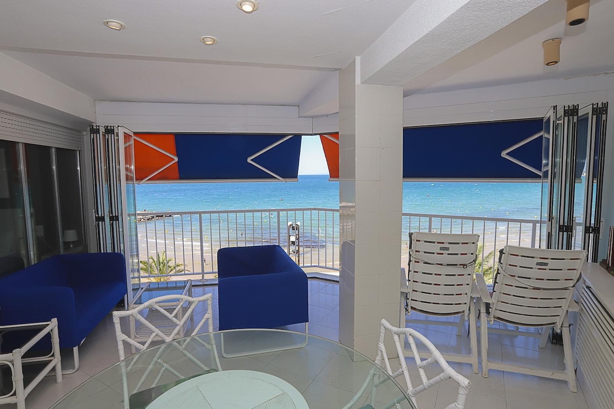 Beach Apartment in Salou Wake up to the sound of the sea. Go for a morning walk on the beach or take a refreshing swim. Relax in a spacious apartment with a beautiful sea view. ★ “Beautiful apartment just steps from the beach.” ✔️ Balcony with sea view ✔️ 2 bedrooms ✔️ 2 bathrooms ✔️ Living room with 55" TV ✔️ Fully equipped kitchen ✔️ Just a few steps from the beach ✔️ Air conditioning ✔️ Quiet location, close to restaurants, bars, and supermarkets
