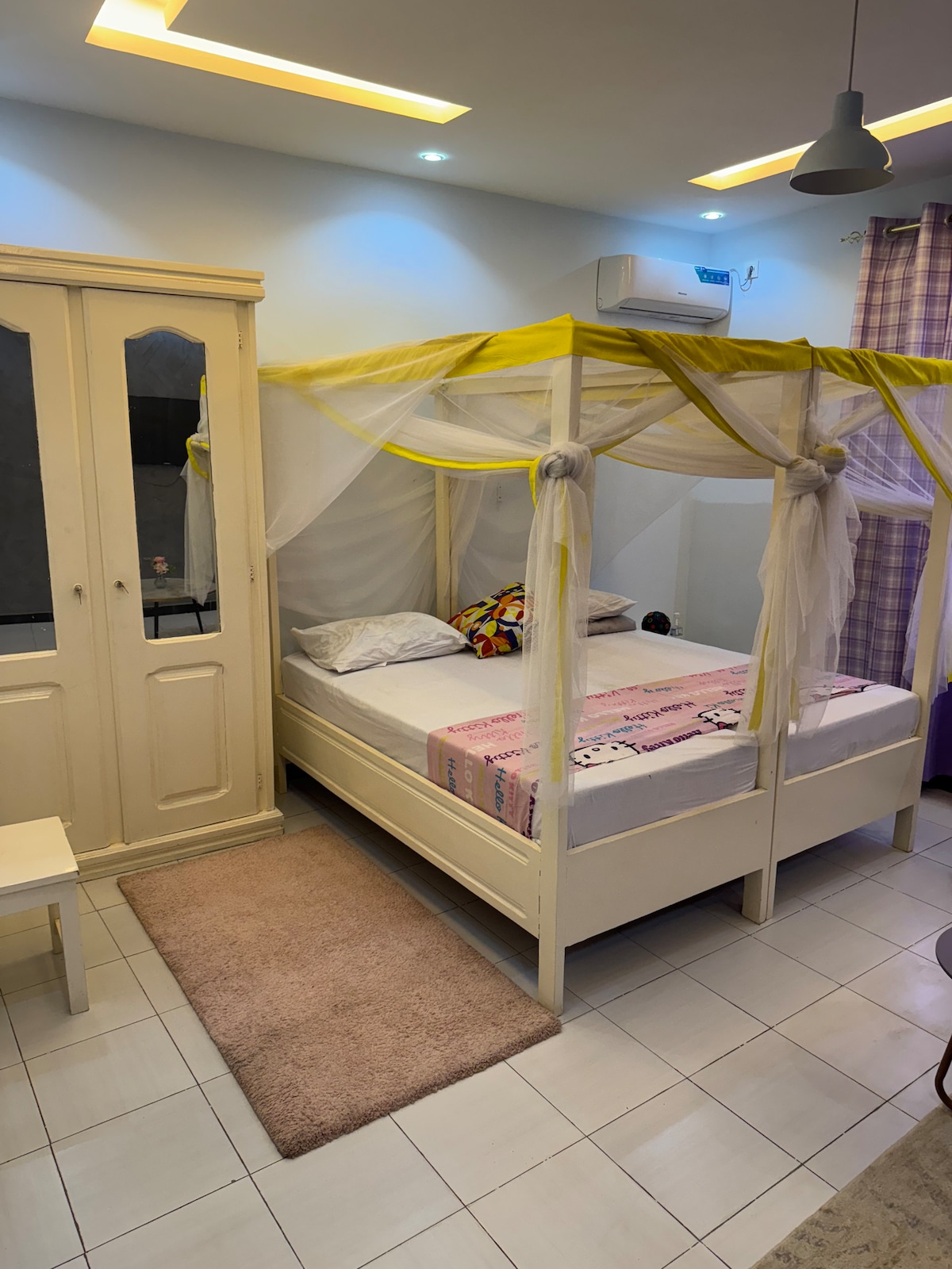 Appartement dans grande maison au centre de Ndangane, a proximité de la plage et du centre ville. Idéal pour un séjour sur Ndangane afin de profiter des activités touristiques ou pour un déplacement professionnel. Appartement avec une réserve d'eau de 1000L. Appartement avec 2 climatiseurs neufs, une par chambre.