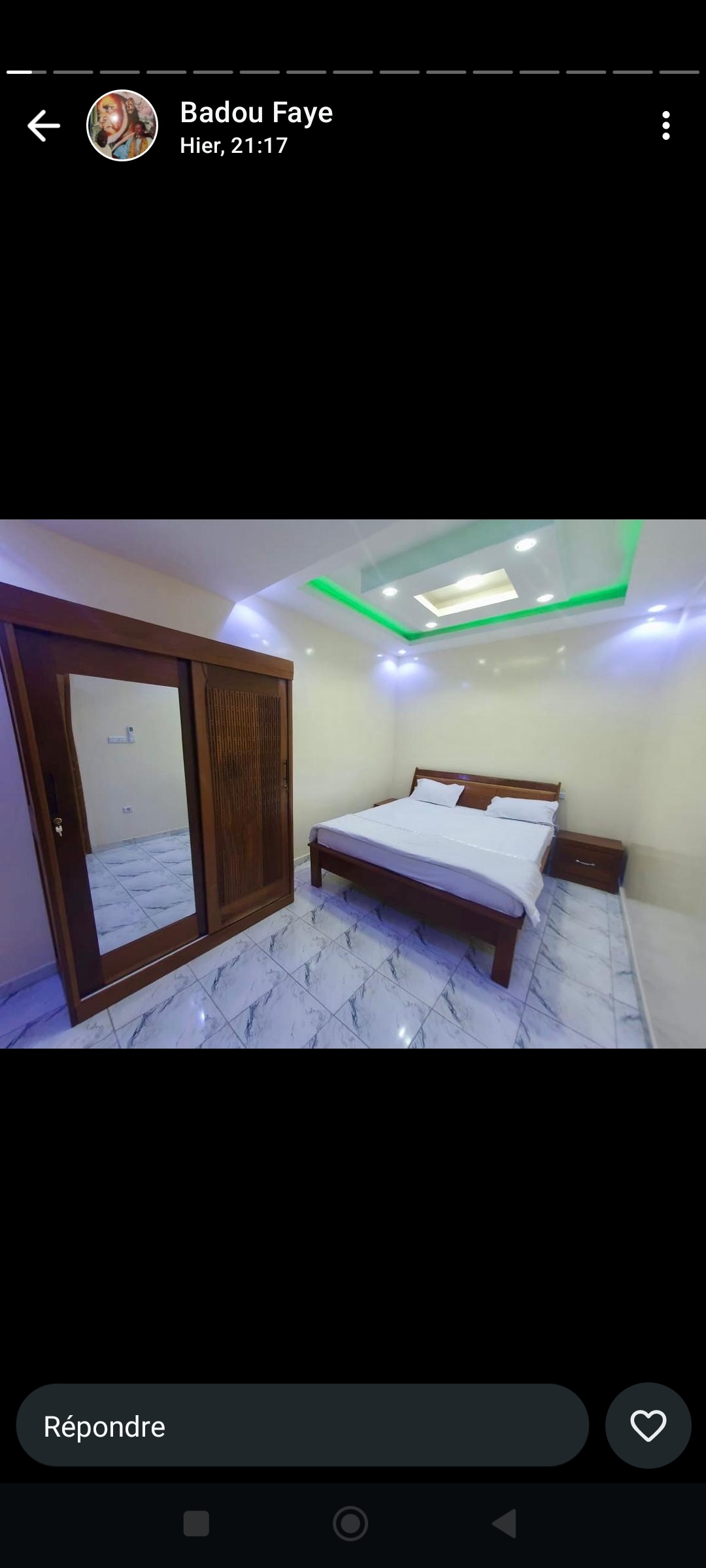 Découvrez le charme et le confort à Fimela, dans la région de Fatick. Nous vous proposons de magnifiques appartements soigneusement aménagés, situés à Fimela, à quelques pas des superbes îles du Sine-Saloum. Dans un cadre paisible et authentique, vous profiterez d’un salon spacieux, moderne , idéal pour des moments de détente en famille ou entre amis. Que ce soit pour un séjour de détente, un week-end d’évasion ou un voyage culturel, cet espace est une véritable invitation à la sérénité.