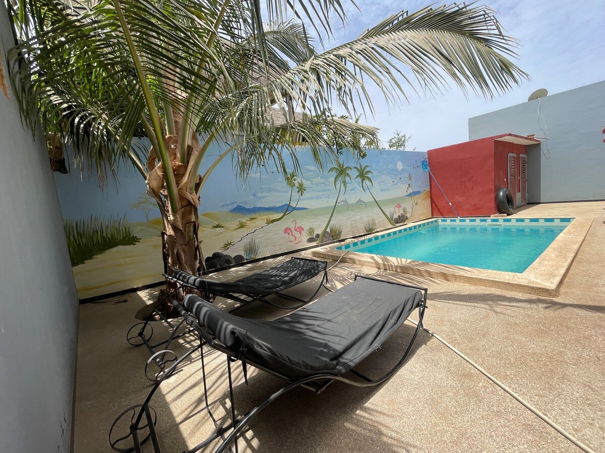 Maison spacieuse et confortable avec piscine, disposant de 5 chambres doubles climatisées donnant directement sur la plage et située en bordure de la réserve naturelle de Palmarin et du delta du Saloum. Modou, le gardien, vous accueillera et assurera l'intendance (organisation des sorties réserve naturelle et pirogue, courses et taxi). Seynabou s'occupera du ménage et pourra vous aider dans la préparation des repas. Pour la sécurité, Babacar, compétent et discret est notre gardien de nuit.