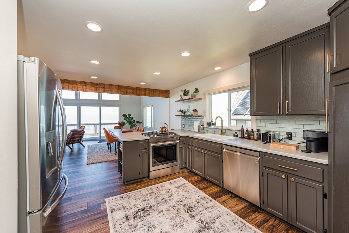 Refresh your soul at this inspiring and tranquil getaway. Located in a small gated community along the Strait of Juan de Fuca, the sights & sounds of the surf & wildlife will leave you in awe from the moment you arrive. Canada is just 12 miles across the Strait so the ships coming and going from the Pacific to the ports of Seattle & Vancouver pass by adding to the ever changing scene. Dramatic tide changes, world class sunsets, abundant wildlife, surfing, crabbing, fishing, beach combing...