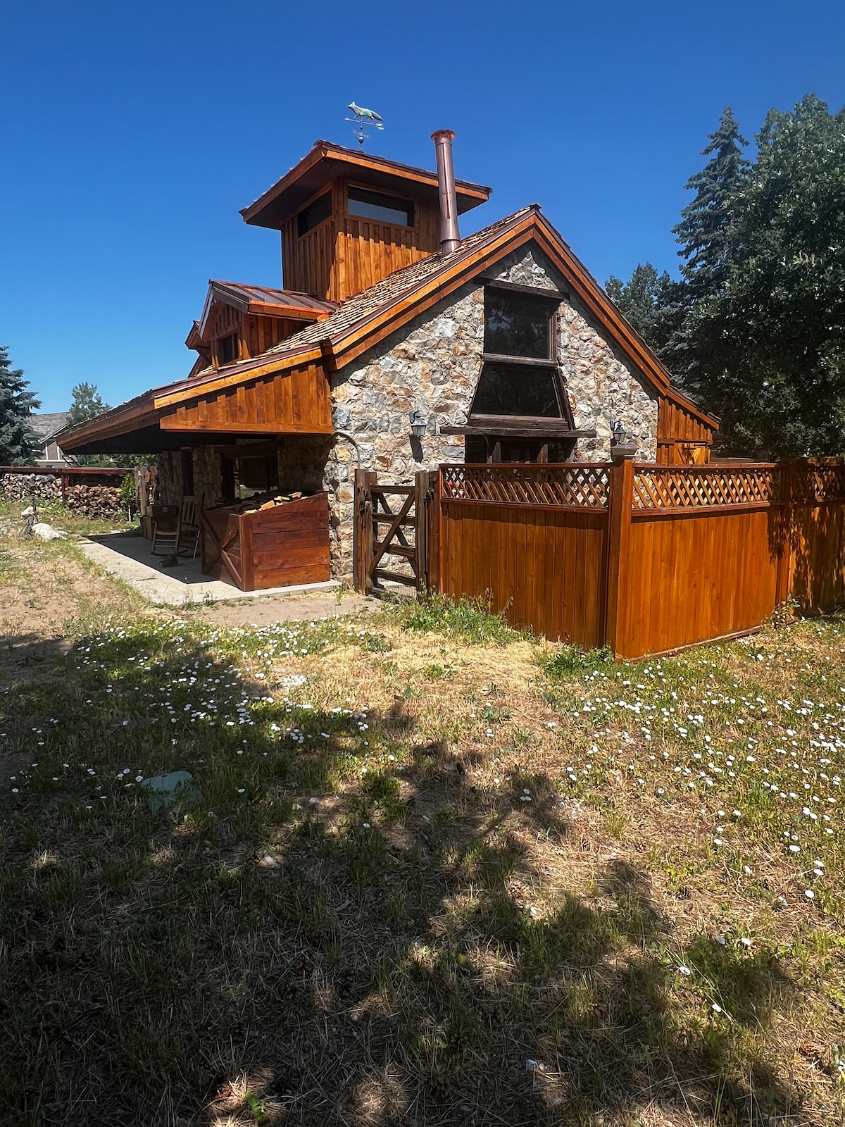 Escape to Creekside Mountain Cottage, where rustic style meets modern comfort. The open living area has a sleeper sofa for 2 adults and the chaise is suitable for 2 children under the age of 10 to sleep on. Gather in the cozy lounge, prepare meals in the stocked kitchen, and enjoy tranquil moments by South Fork Creek. A perfect retreat for couples, families, or friends. Need more room? Inquire about the loft next door, offering an additional bedroom and private bath.