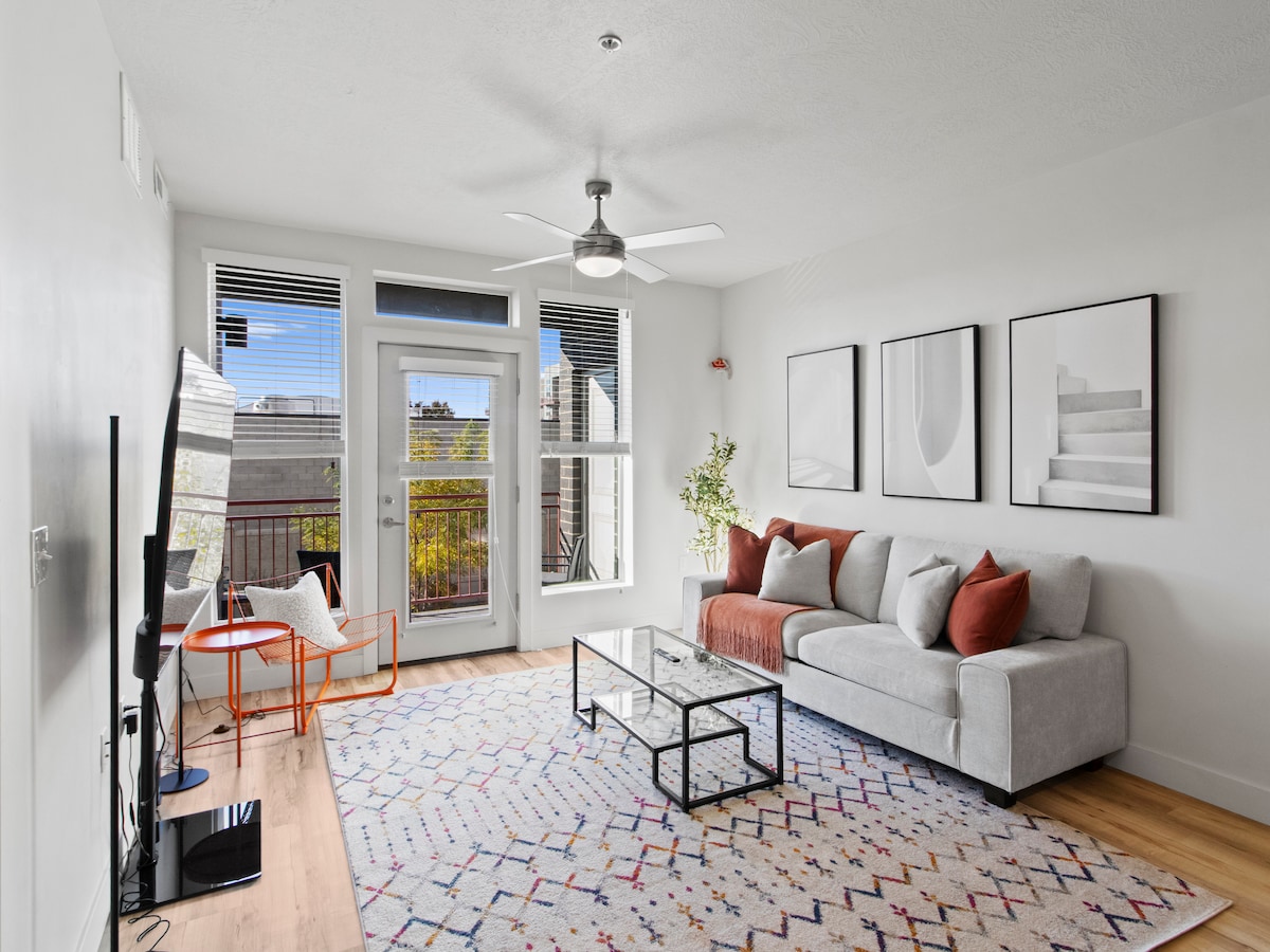 Experience luxury in our spacious apartment located in the heart of SLC. Enjoy stunning mountain views from the open floor plan and modern bohemian decor of the spacious living area with a large flat-screen TV. The fully equipped kitchen and en-suite bathroom with a luxurious shower make your stay comfortable. The central location puts you just steps away from restaurants, bars, entertainment venues, university, hospitals and convention centers. Book now and enjoy the best of Salt Lake City.