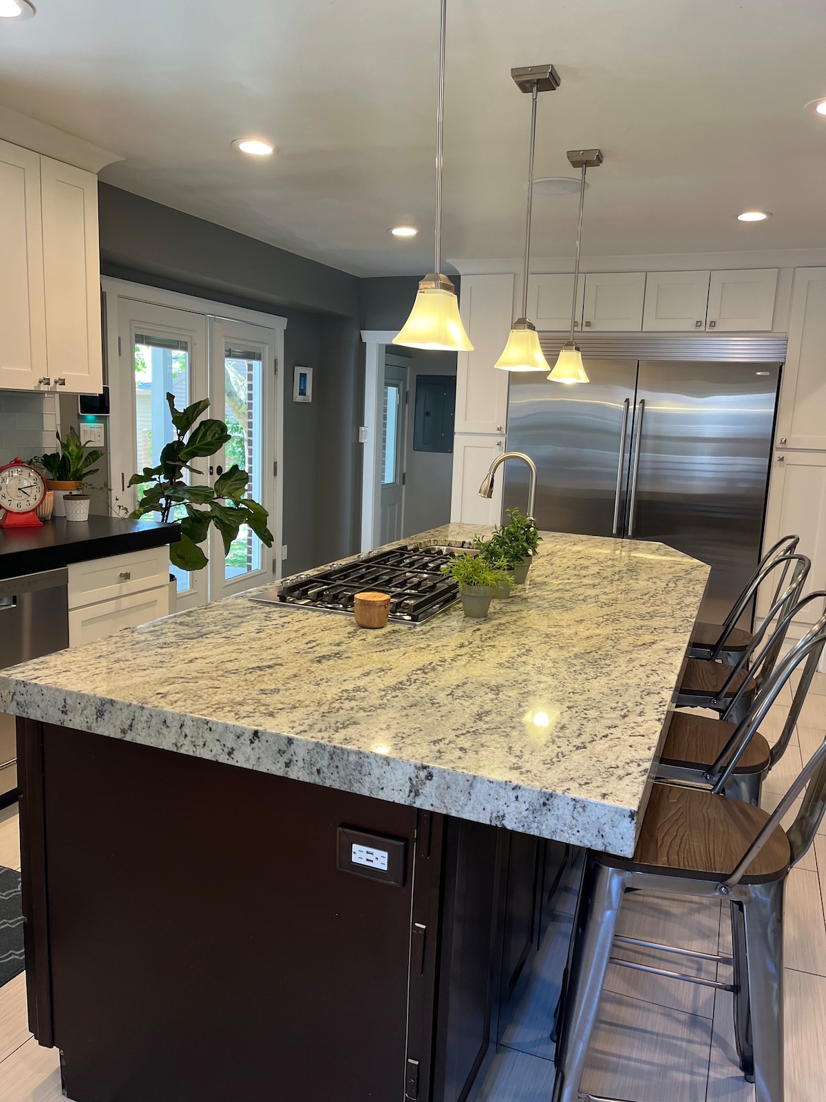 Beautifully decorated one bedroom brick bungalow enjoy the luxurious yet charming feel of the custom gourmet kitchen with large island, quartz countertops, combination of solid and glass front cabinets top-of-the-line stainless steel smart appliances ask Alexa directions, weather or play music and the LG smart refrigerator’s Wi-Fi screen will answer. All tile bathroom with European shower glass, subway tiles, rain showerhead with optimal water pressure This unique place has a style all its own.