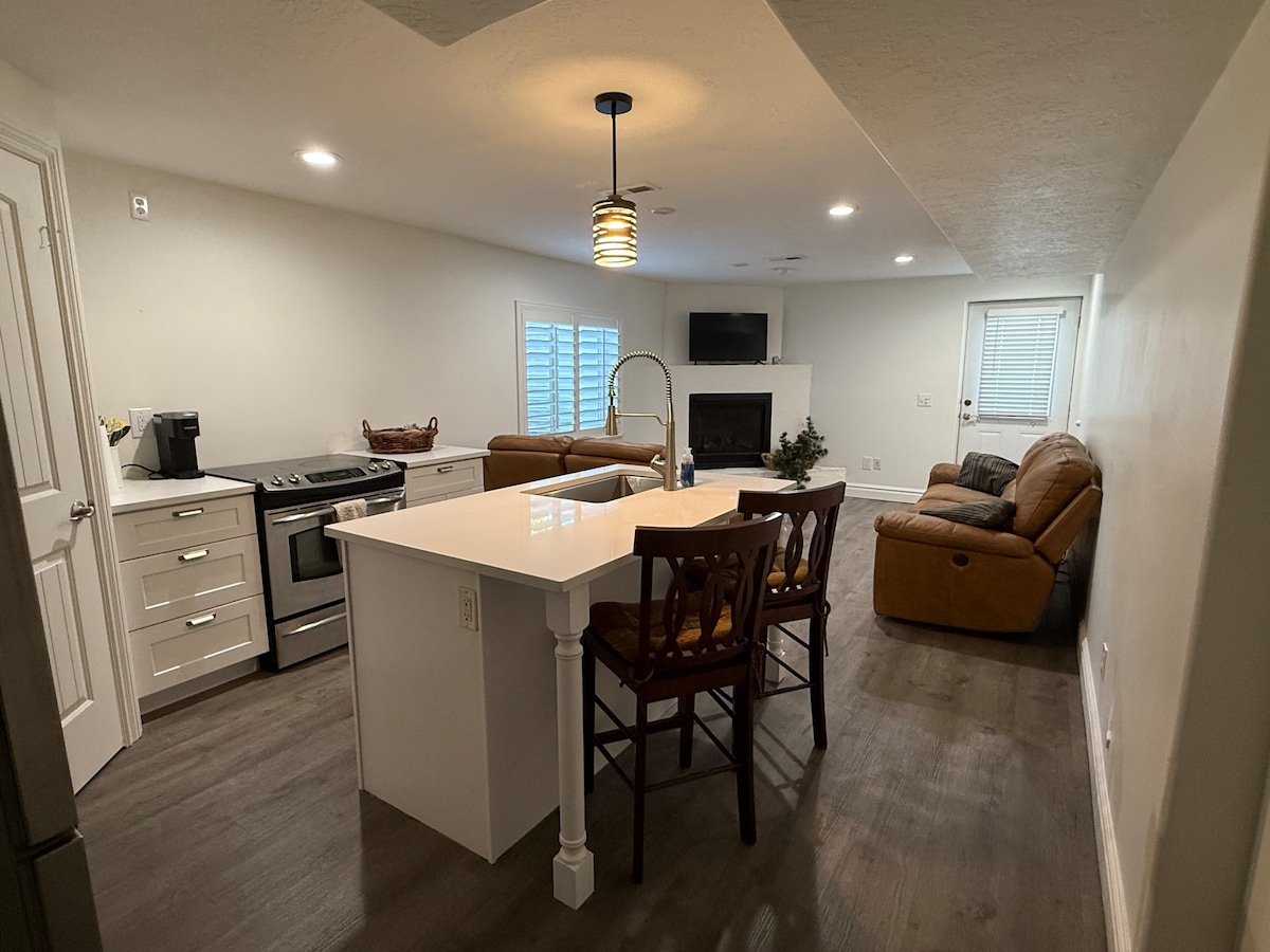 Welcome to our cozy and centrally located basement studio in "Lehi". If you want to explore Utah to the fullest, this is the perfect spot to start your adventure! This property is only 5 to 10 minutes drive from a pharmacy, the best restaurants in the area, Costco, Walmart, just to name a few! You will enjoy a spacious bedroom, 1 bathroom, open kitchen with all amenities to prepare your meals, a living room area and a washer and dryer unit to make you and your family or friends feel at home.