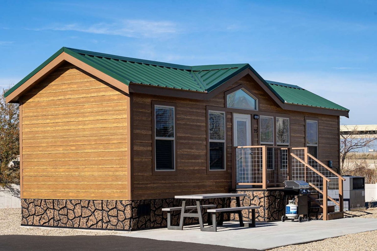 These rentals feature two bedrooms with queen size beds, one bedroom includes a half bathroom, as well as a sleeper sofa in the living room to accommodate up to 5 guests. They come furnished and provide a full kitchen that has a refrigerator, two-burner cooktop, convection microwave, coffee maker, toaster, and utensils. Units include a full bathroom with a tub/shower combo in the main living space, heat and A/C. Each of these sites provides a picnic table and grill for your outdoor enjoyment.