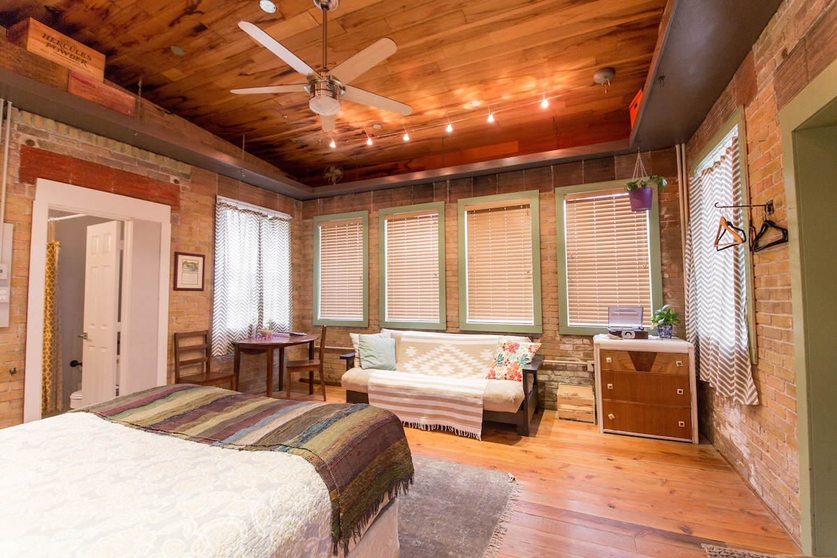 The Art Cottage at the Historic Baldwin Radio Factory is perfect for those seeking a charming & artful stay while traveling for adventure, business, or vacation. This convenient location is 30 minutes from ski resorts, 10 minutes from downtown, steps away from a park, cafe, yoga studio, and library. This unique building was once a factory powered by the nearby Mill Creek, and produced the world's first headphones. Now converted to art studios including: painting, glass, carpentry, music & more.