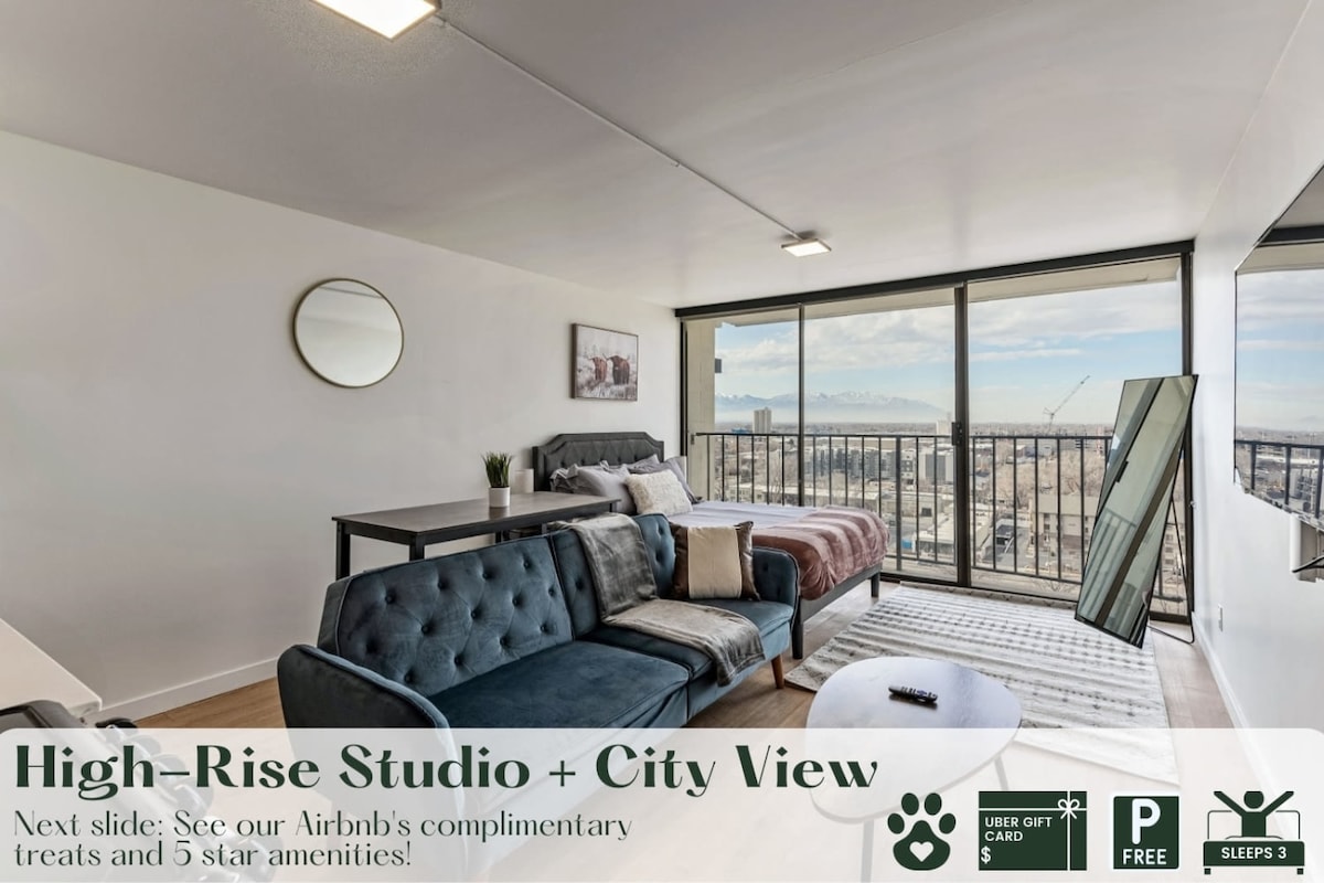 ❤️ Click the heart button to save our listing so you can easily find us again on your next visit to SLC! Enjoy your stay in this modern downtown Salt Lake City studio featuring a comfy king-size bed and private balcony with city views. Perfect for relaxation or business trips, this stylish space offers a full kitchen, fast Wi-Fi, smart TV, and garage parking. Close to restaurants, shops, and top attractions—book now and enjoy an exclusive 10% discount on your stay!