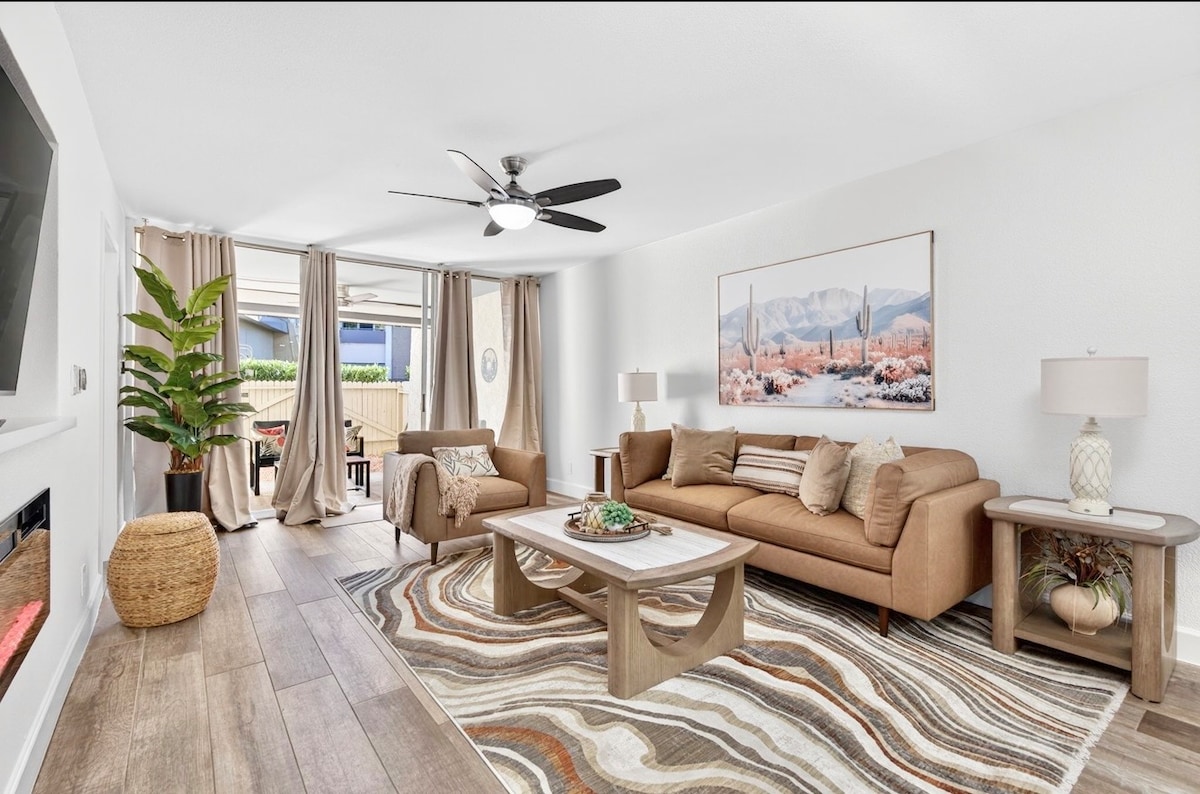 Welcome to your first-floor, stylish condo in North Scottsdale’s desirable neighborhood! This curated space blends Southwest charm with modern updates. You’re just minutes from golf courses, best hiking trails, and quick freeway access. Next to a heated pool, Jacuzzi, and gym. Covered parking is right outside your door. Walk to grocery stores, shops, restaurants, parks, and pickleball courts. Plus, easy access to Mayo Clinic and WestWorld nearby! Attentive hosts are always ready to help.