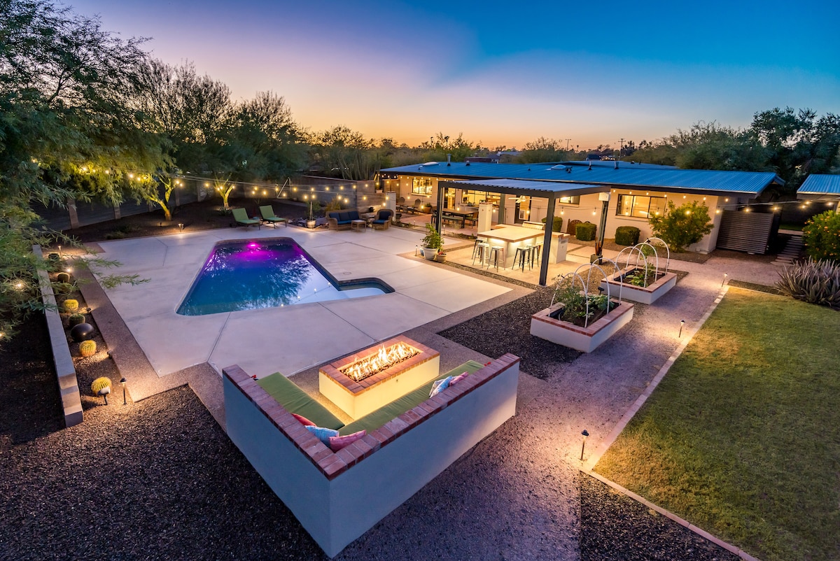 ➳ Walk to the heart of Old Town in 2 minutes (Seriously, as good as it gets) ➳ Sprawling backyard with heated pool and spacious hot tub ➳ Endless outdoor living space with fire pit, propane BBQ grill and dining area ➳ Two generous master suites and three bathrooms ➳ Collapsible wall in the living room for indoor-outdoor living Looking for something a little different? I’ve got 8 more top-rated Scottsdale homes, all 5 minutes or less from Old Town. Click my host profile to explore!