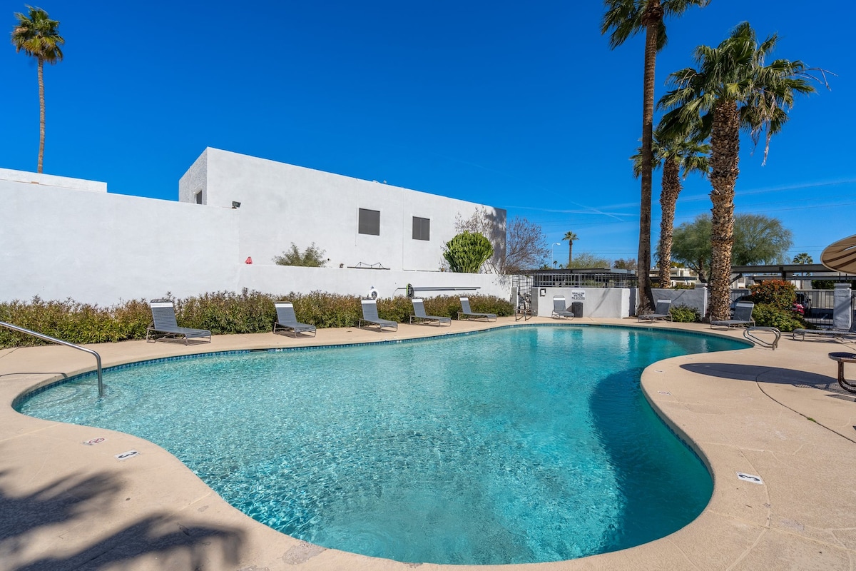Newly updated this thoughtfully designed home, sleeps 10 and is sure to impress. Walk, ride or catch the Trolly to bars, restaurants. art galleries or scottsdale stadium, this place is in the middle of it all. When you're not out enjoying the nearby surrounding, the community offers a recently renovated pool, or chill on the quiet patio. The space itself has all the conveniences of home, fully stocked kitchen, an office nook, and indoor and outdoor living spaces.