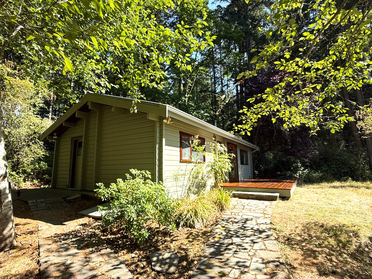 Unwind in a private forest retreat with cedar sauna, wood stove, outdoor shower, and a spacious deck overlooking a pond—just minutes from Beddis Beach. This 600 sq. ft. cottage offers cozy comfort with a queen bed, queen pull-out sofa, Firestick TV, and breakfast essentials. Set on 5 acres and only 10 minutes' drive to Ganges Village, The Blue Ewe is ideal for couples or solo travelers seeking quiet, nature, and rejuvenation on Salt Spring Island.