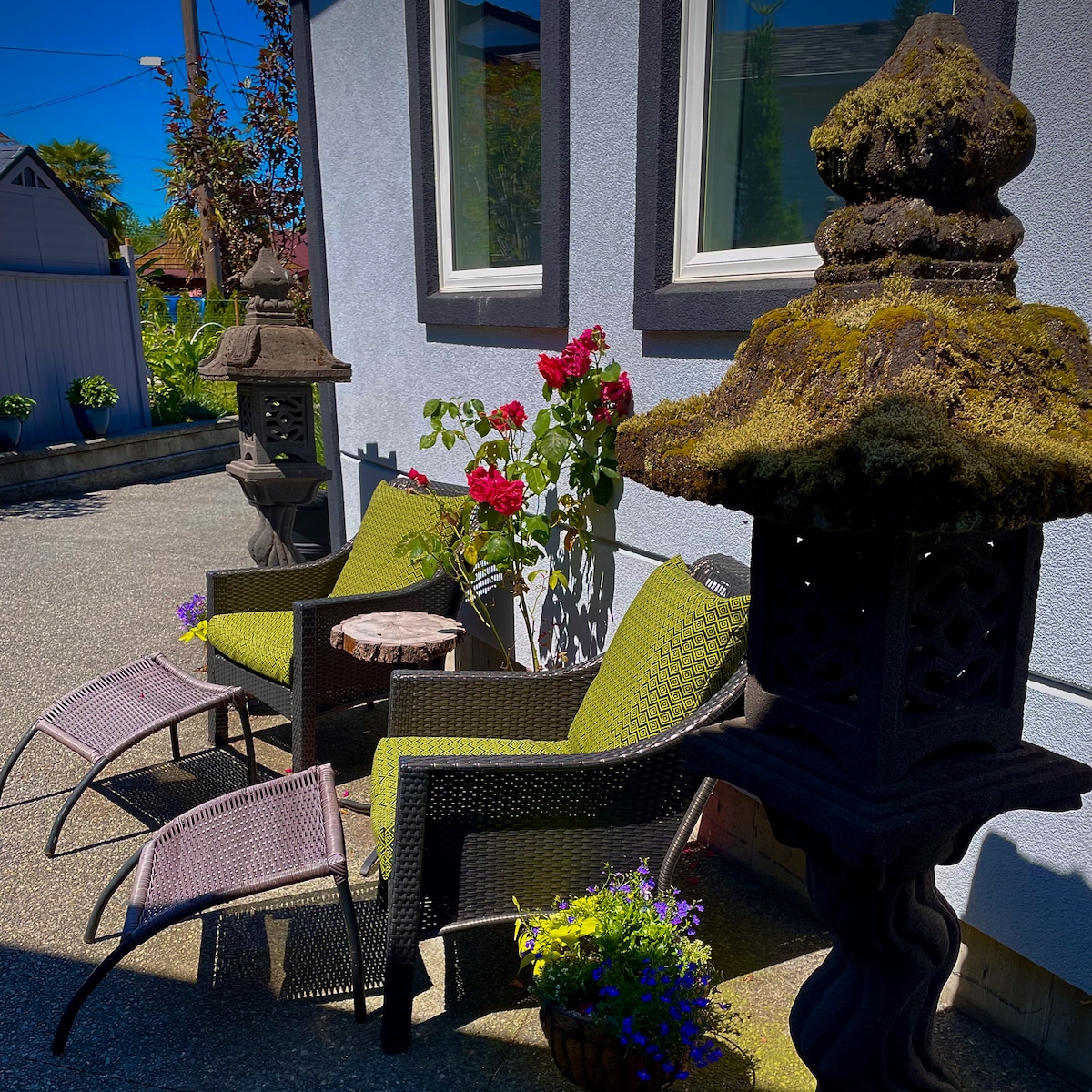 Recharge and relax at this peaceful, sustainable stay. Walk to the beach, to dinner, the theatre or sit and relax in the asian inspired garden. Nestled in the heart of old town, this private carriage house, second story suite offers a full kitchen and outside seating area. With an ocean and courtyard view you can wake to the sunrise. Excellent walkability - Kin Beach, the Chemainus Theatre and many shops and restaurants are only a block or two away.