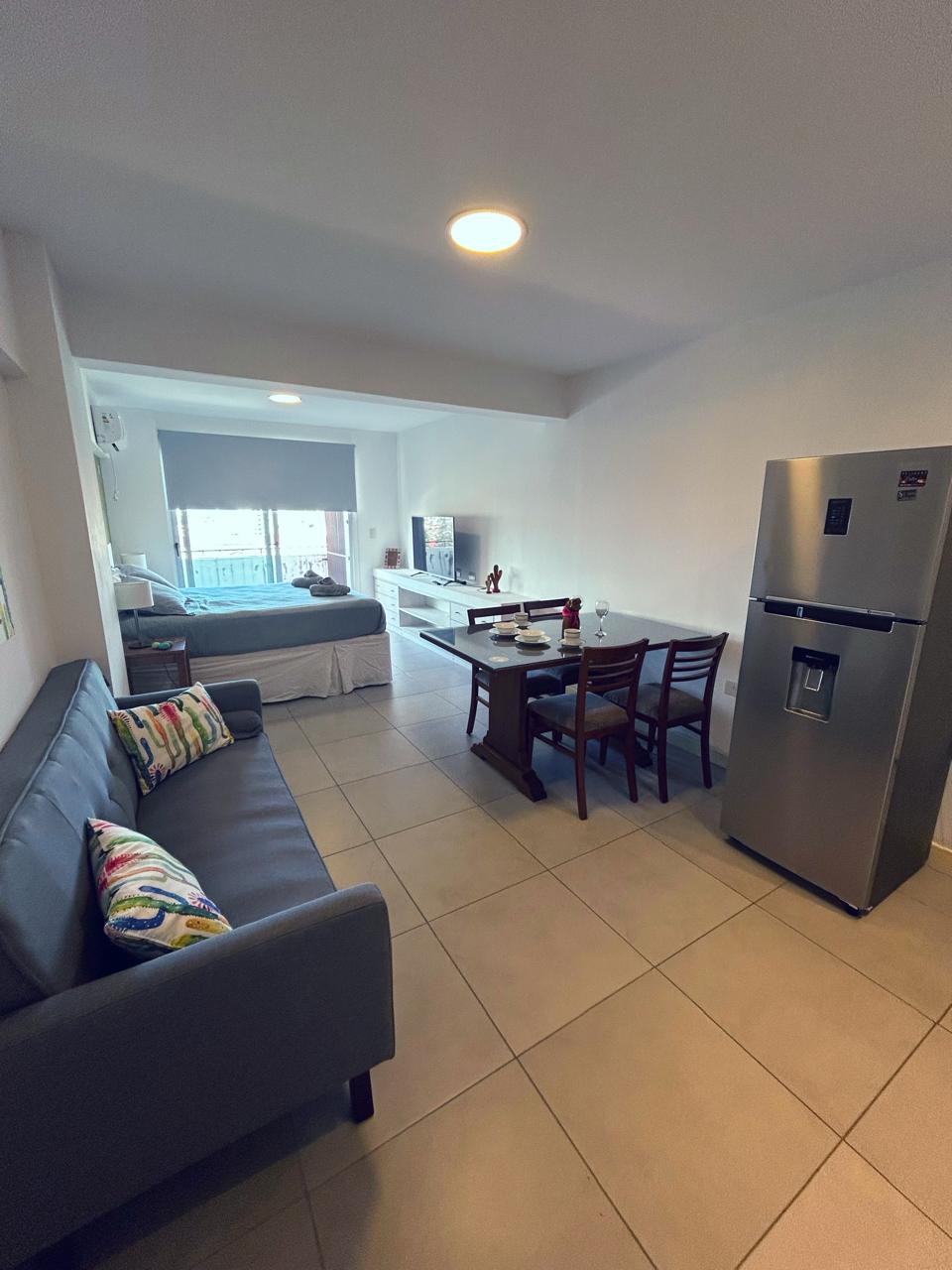 Monoambiente nuevo, ambientado para una cómoda estadía en la ciudad. Cuenta con aire acondicionado, calefacción central, cama matrimonial y un espacio de cocina/comedor, además de un baño espacioso. Espacio no fumador. Se ubica dentro de un edificio familiar, a aproximadamente 10 cuadras del centro de la ciudad, 4 cuadras del shopping alto noa y la zona gastronómica de la Balcarce.