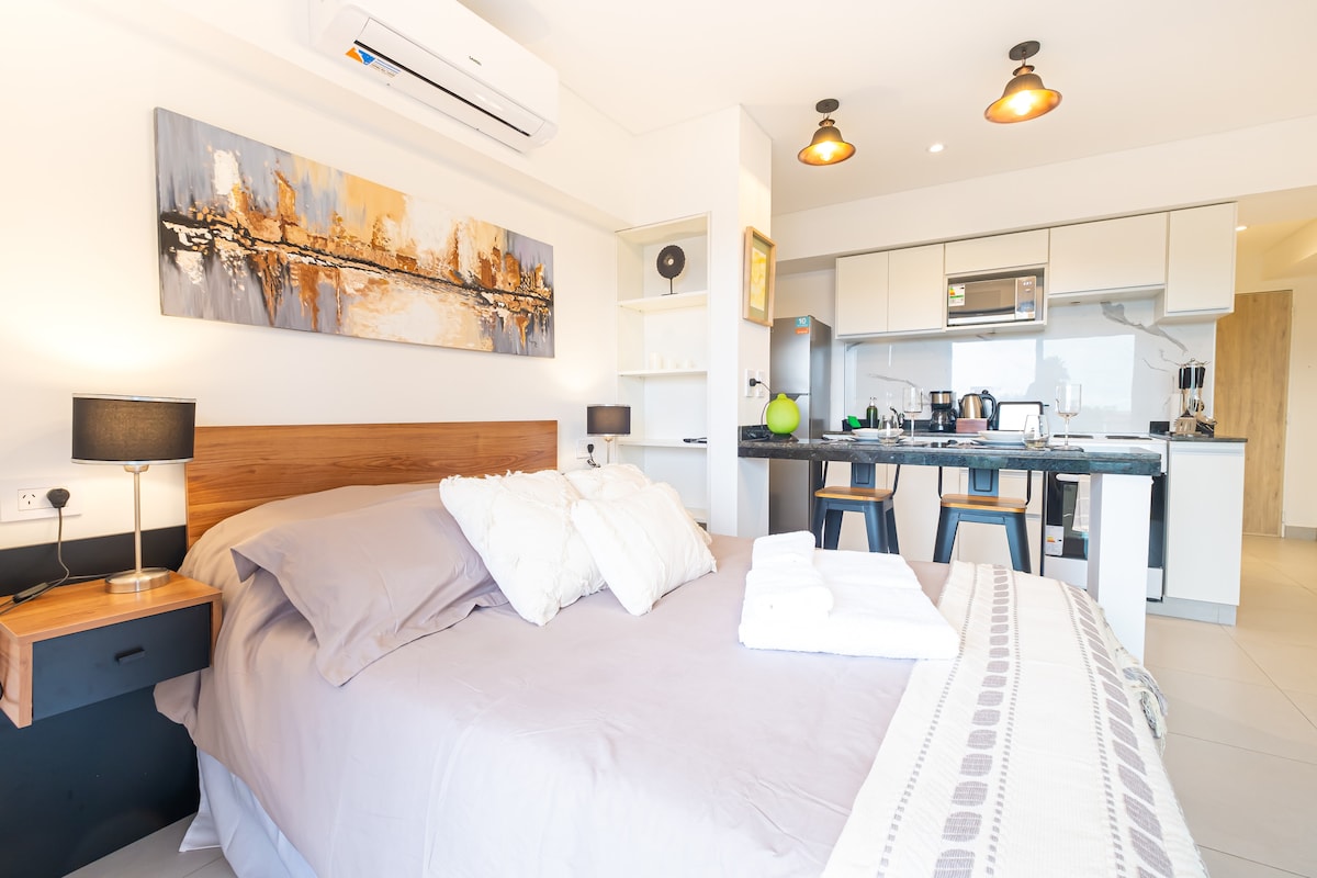 Mono premium moderno ubicado en una de las zonas más exclusivas de Salta. Diseñado con estilo contemporáneo, ofrece un ambiente cómodo, luminoso y totalmente equipado para una estadía de primer nivel. Cuenta con balcón privado ideal para disfrutar el aire libre, además de acceso a pileta y SUM del edificio. Su ubicación estratégica permite moverse fácilmente a los principales puntos turísticos, gastronómicos y comerciales. Perfecto para quienes buscan confort, diseño y una experiencia superior.