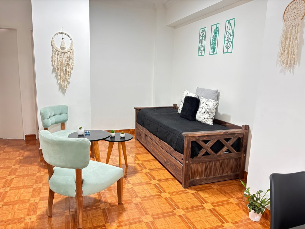 Modern studio apartment in Paseo de los Poetas Located in the vibrant Paseo de los Poetas, this cozy studio is perfect for couples or solo travelers. Just steps from bars, peñas, and the cultural scene, it features a comfortable bed, kitchen, air conditioning, WiFi, and TV. Ideal for relaxing and experiencing Salta from its best location. Book your stay and enjoy the city to the fullest—we look forward to hosting you!