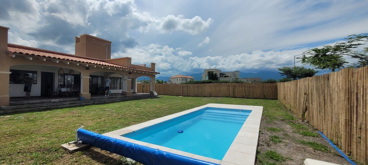 Our house sits on top of a hill in San Lorenzo with stunning views over the city of Salta and the Andes, located in the exclusive country club of Altos de San Lorenzo with 24 hrs. security. Our house features: Gorgeous living area with high ceilings and breathtaking views Formal dinning room 4 ensuite bedrooms Argentine bbq place with table for 8/10, sofas and beautiful terrace Infinity pool with sun loungers Large fully equipped kitchen Access to Tennis Courts 3 hrs. daily maid service