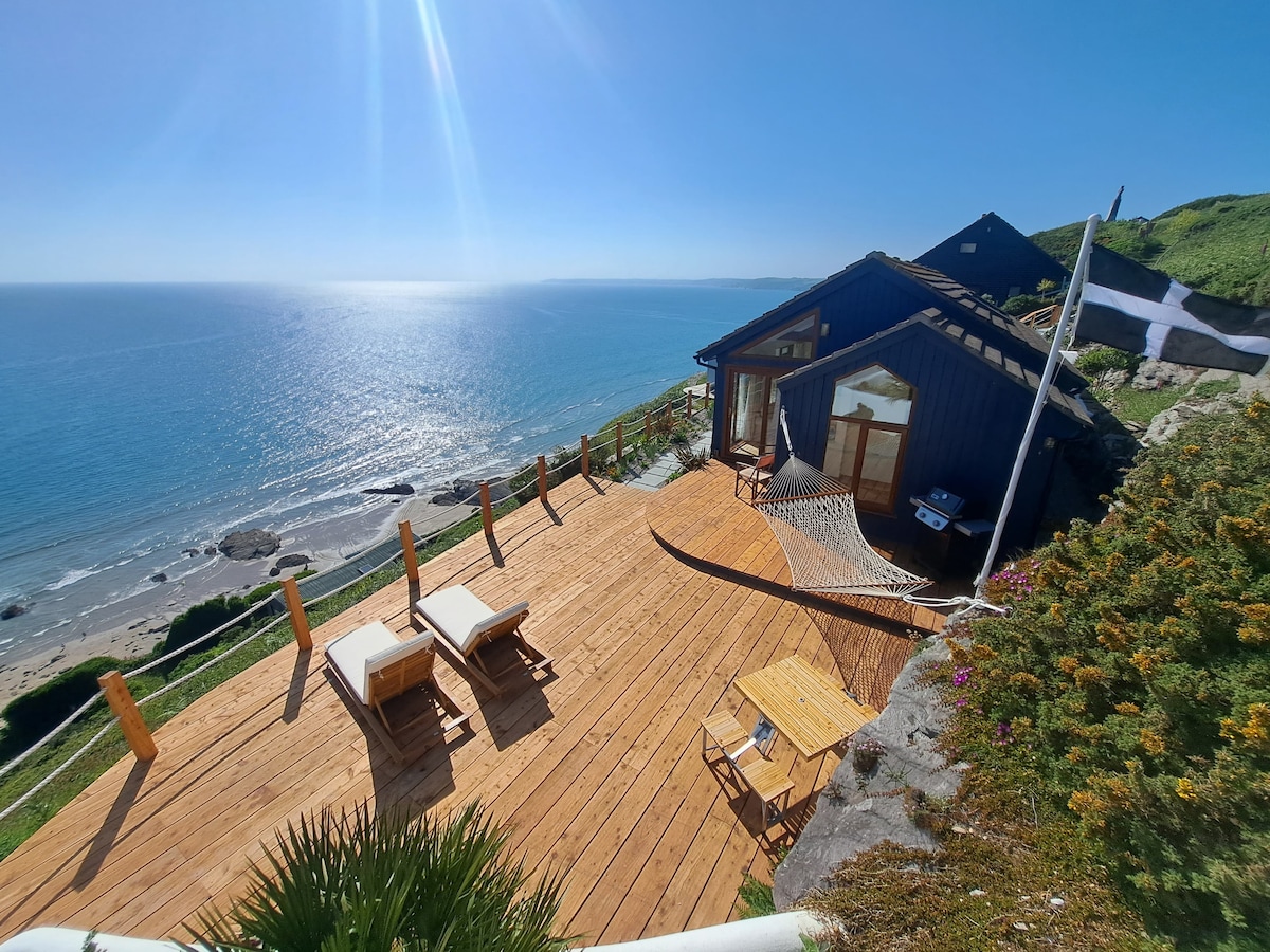 This stylish Cornwall Chalet is the perfect place to stay for a romantic getaway for 2 . The owners, have tenderly re-created a heavenly chalet after the original chalet from the 1930's was knocked down & rebuilt to this stunning standard by local craftsmen. Panoramic views over the ocean stretching as far as Rame Head ,Looe, Seaton & Downderry. Close to HMS Raleigh &Polhawn Fort. Miles of Whitsand Bay beach, simply relax & enjoy the panoramic views & ocean Their sister chalet is Seadrift