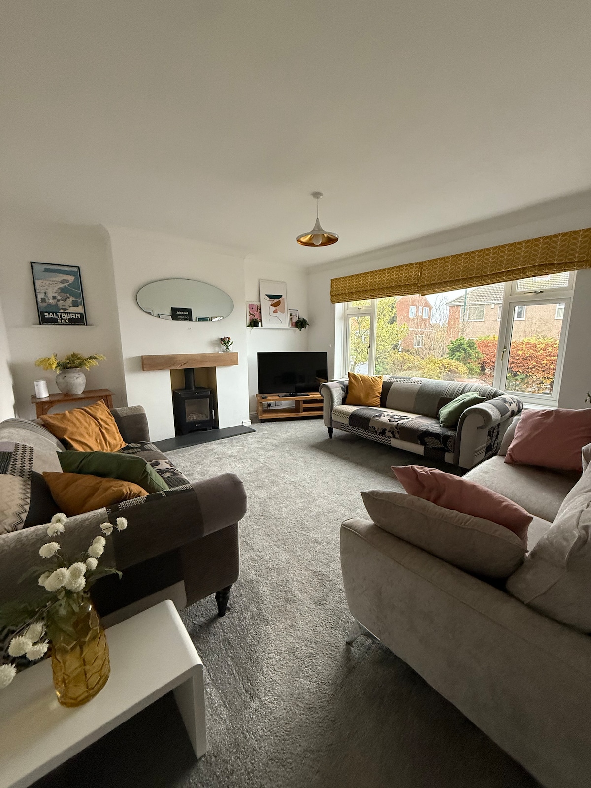 Sea views, window seats and the sound of waves set the scene for your Saltburn escape. Steps lead down to the beach, pier, surf school and cafés, and a Victorian funicular tram can take you back up. This 6-sleeper suits families, surfers, walkers and romantic breaks. Decking with sea views for sundowners after a surf session. Log burner for cosy nights. High-spec kitchen/diner, spacious lounge and 2 bathrooms. Cali-coastal colours, original art and everything for sandy feet and slow mornings.