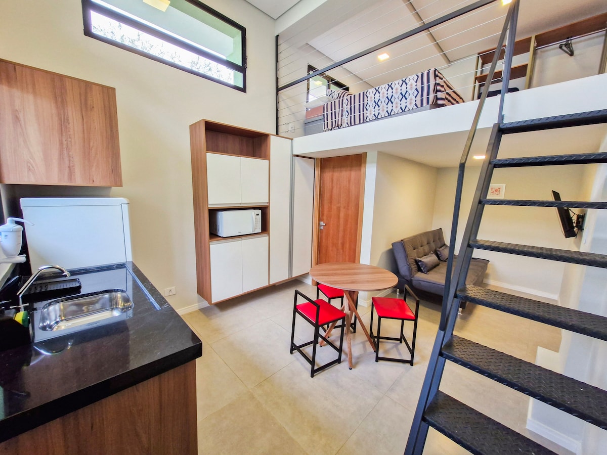 Loft com garagem - Cozinha equipada (airfryer, microondas, geladeira, fogão elétrico) - Wi-Fi - Garagem com portão eletrônico - Self check in (senha personalizada) - Ar condicionado - Smart TV - Incluso Roupas de cama e banho Nosso loft é cheio de charme e personalidade! Note que a cama fica em um mezanino, onde o teto é um pouco mais baixo que o normal, o acesso é por escada. Recomendamos considerar esses detalhes antes da reserva, para que sua estadia seja o mais confortável possível!