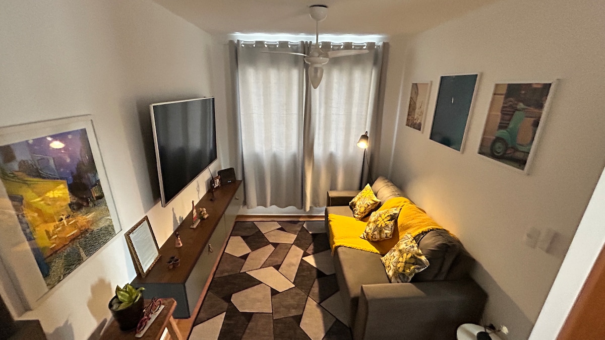 📌 Melhor localização de Campinas. Entre o Cambuí, Centro e Bosque 🛌 Uma Cama Queen Size e Sofá-Cama Casal 🧑🍳 Cozinha completa (cooktop de indução, forno, utensílios, purificador de água, Cafeteira Nespresso e muitos mais) 💻Ótimo para Home Office (internet 350mbs) e espaço exclusivo para trabalhar; 📺 TV Smart 43' -❄️ Ar condicionado -🌄 Ampla varanda com sol da manhã, com vista para o Bosque dos Jequitibás 🚗Vaga de garagem coberta e demarcada dentro do condomínio