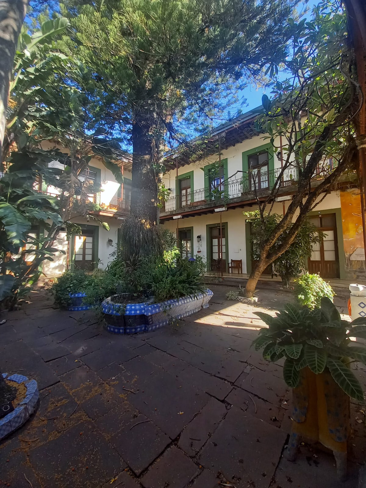 Monumento Histórico Nacional, en pleno centro de la ciudad, con hermosos patios para disfrutar de la naturaleza y tranquilidad. Con mucha Historia y lugares para recorrer. Habitación cuádruple, con una cama matrimonial y en ambiente separado dormitorio con 2 camas individuales. Disfruta del fácil acceso a tiendas y restaurantes populares desde este encantador espacio para quedarte.
