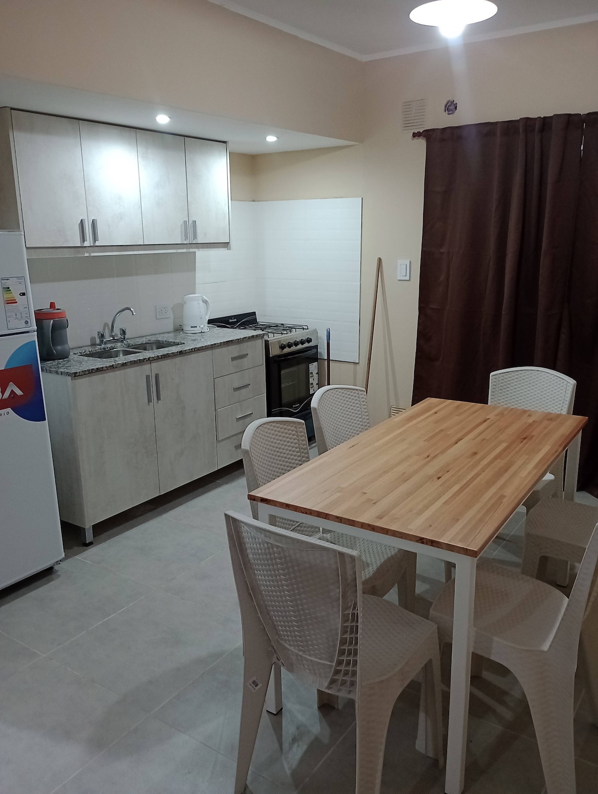 Departamento a estrenar a 6 cuadras de la terminal. Cuenta con Heladera, SmarTV, Cocina, Aire acondicionado Frío/Calor y baño completo. Tiene una balcón con vista a la avenida principal de la ciudad. Posee además una parrilla para hacer asado. Para estacionar un vehículo hay un lugar propio sobre la vereda (no sobre la calle), custodiado por cámaras de seguridad.