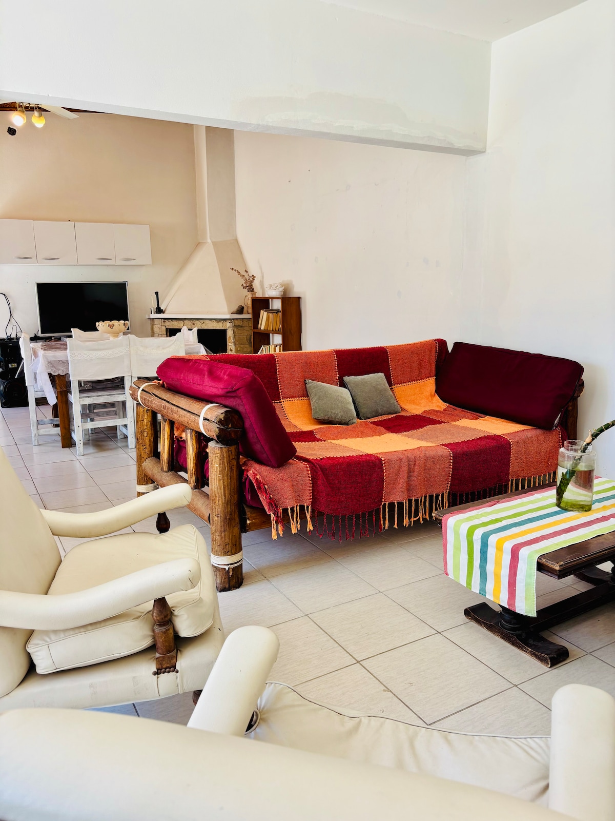 Casa de 62m² en el tranquilo barrio Jardines, Termas del Daymán. Ideal para relajarse, cuenta con living-comedor, kitchenette y cama individual con marinera. Incluye TV cable, WiFi y un dormitorio adaptable con dos camas indiv. sommier o una queen size. Parrillero techado, piscina de agua fría, área de juegos para niños y arco de fútbol. Entrada indep. para vehículos. Piscina habilitada a partir 1 de nov. hasta 15 abril. En ocasiones es compartida con otra propiedad que dispongo en el predio.