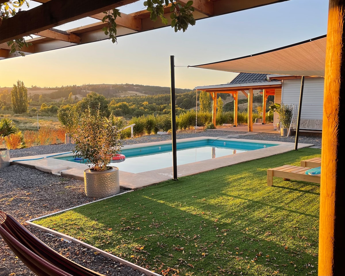 Relájate un rato. A 10 minutos de Los Ángeles camino a cerro colorado km 12. Descansa en una casa luminosa y acogedora, perfecta para familias o grupos. Disfruta una terraza amplia, quincho ideal para asados y una piscina privada para relajarte bajo el sol. Ambientes cómodos, cocina equipada y un entorno tranquilo para desconectar. Todo pensado para que llegues, disfrutes y no quieras irte.